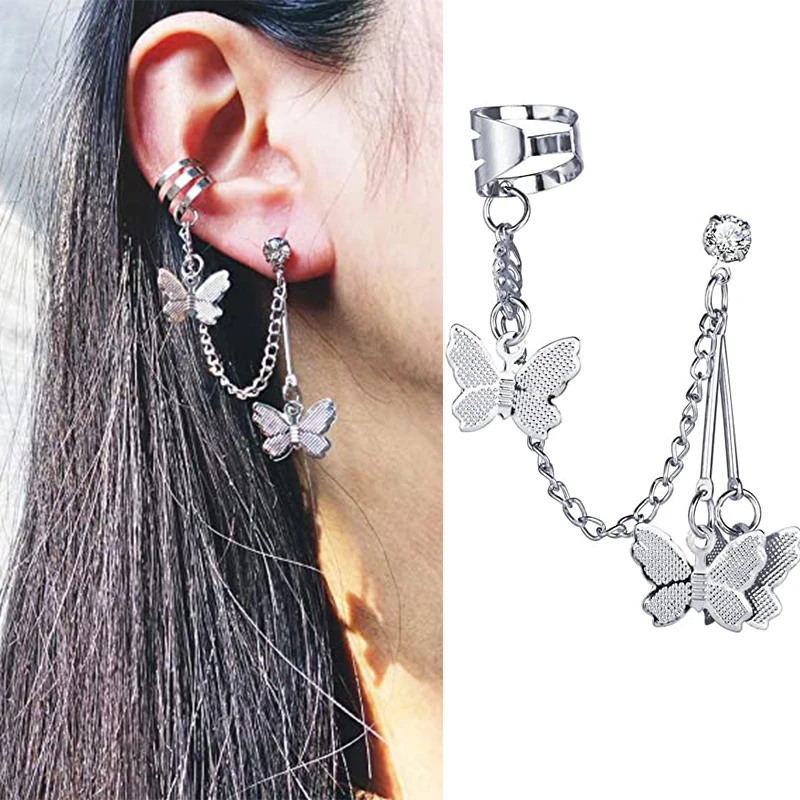 1 шт. черная цепочка из нержавеющей стали с двумя крестиками и кисточками, маленькое кольцо, мужские и женские клипсы, серьги-каффы на уши, стильные Ги, панк, подарок