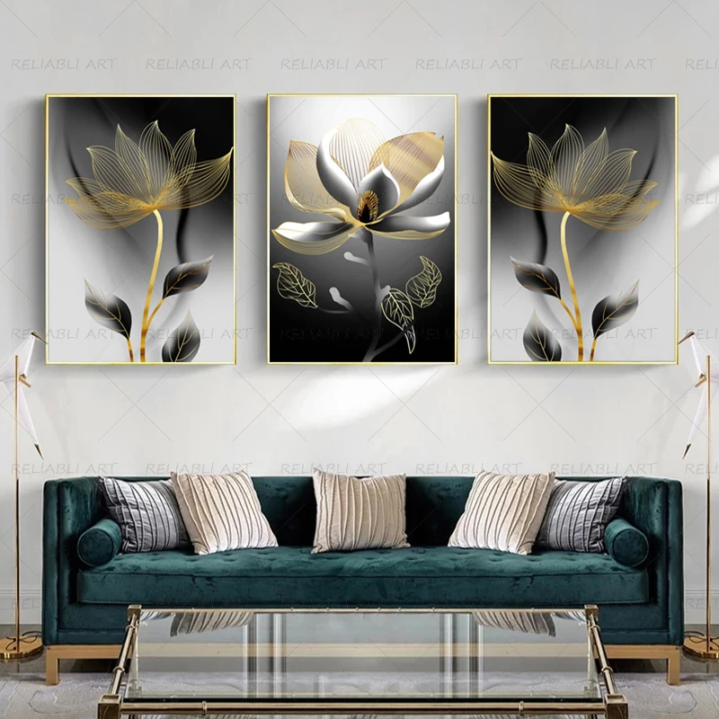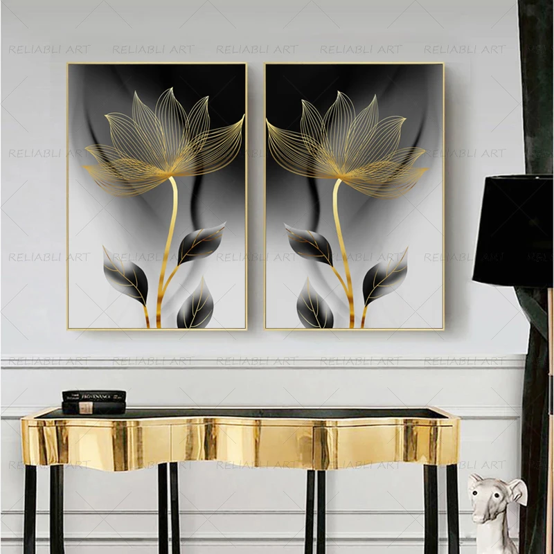 Постер с золотыми черными цветами, Роскошные Настенные картины на холсте, абстрактная живопись, картины для гостиной, дивана, Современный домашний декор