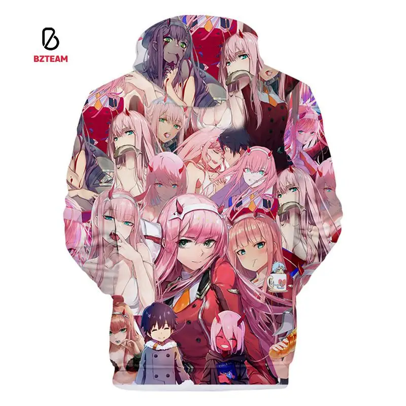 Толстовка BZTEAM с 3D принтом для аниме-девушек, модная Толстовка Zero Two, Мужская Женская толстовка Харадзюку, топ для косплея, куртка унисекс