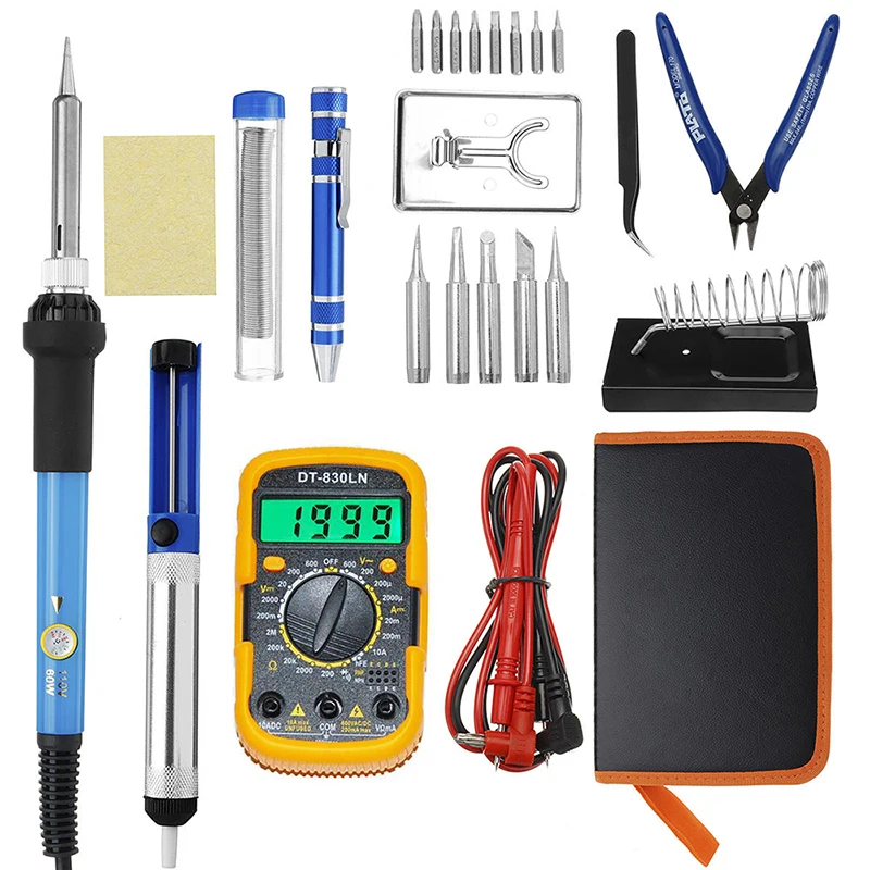 Паяльник Электрический с регулятором температуры, 60 Вт, с цифровым мультиметром инструменты для ремонта припой Наборы для сварочных работ пояльника для пайки 220v оловоотсос мультиметр electric soldering iron