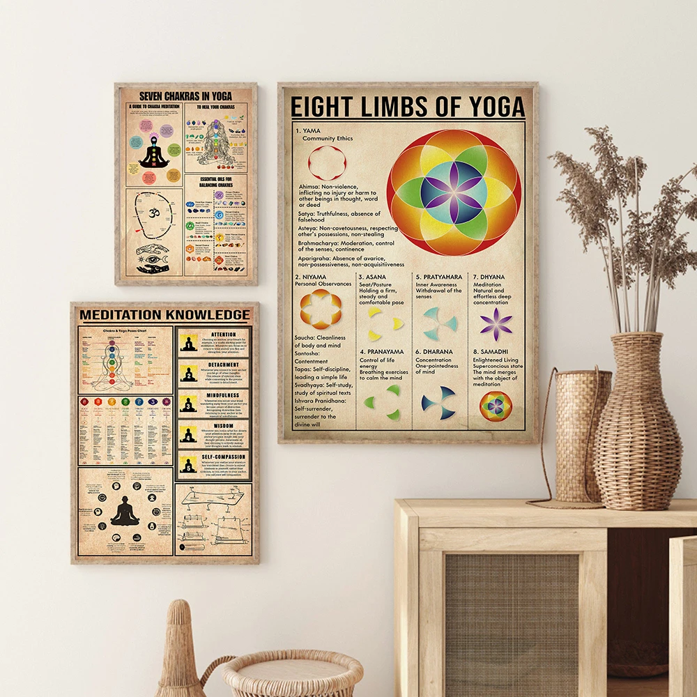 Картина на холсте, чакры для йоги, знания, руководство, плакат, медитация, настенное искусство, Йога, студийный зал, печать, украшение для дома