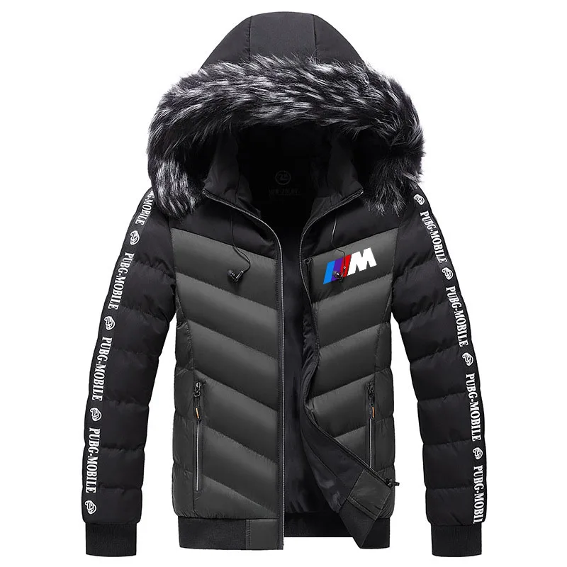 Утолщенные теплые мужские пальто на молнии 2021, высококачественные куртки в стиле панк BMW с логотипом спортивного автомобиля, модные повседневные мужские пуховики в стиле панк