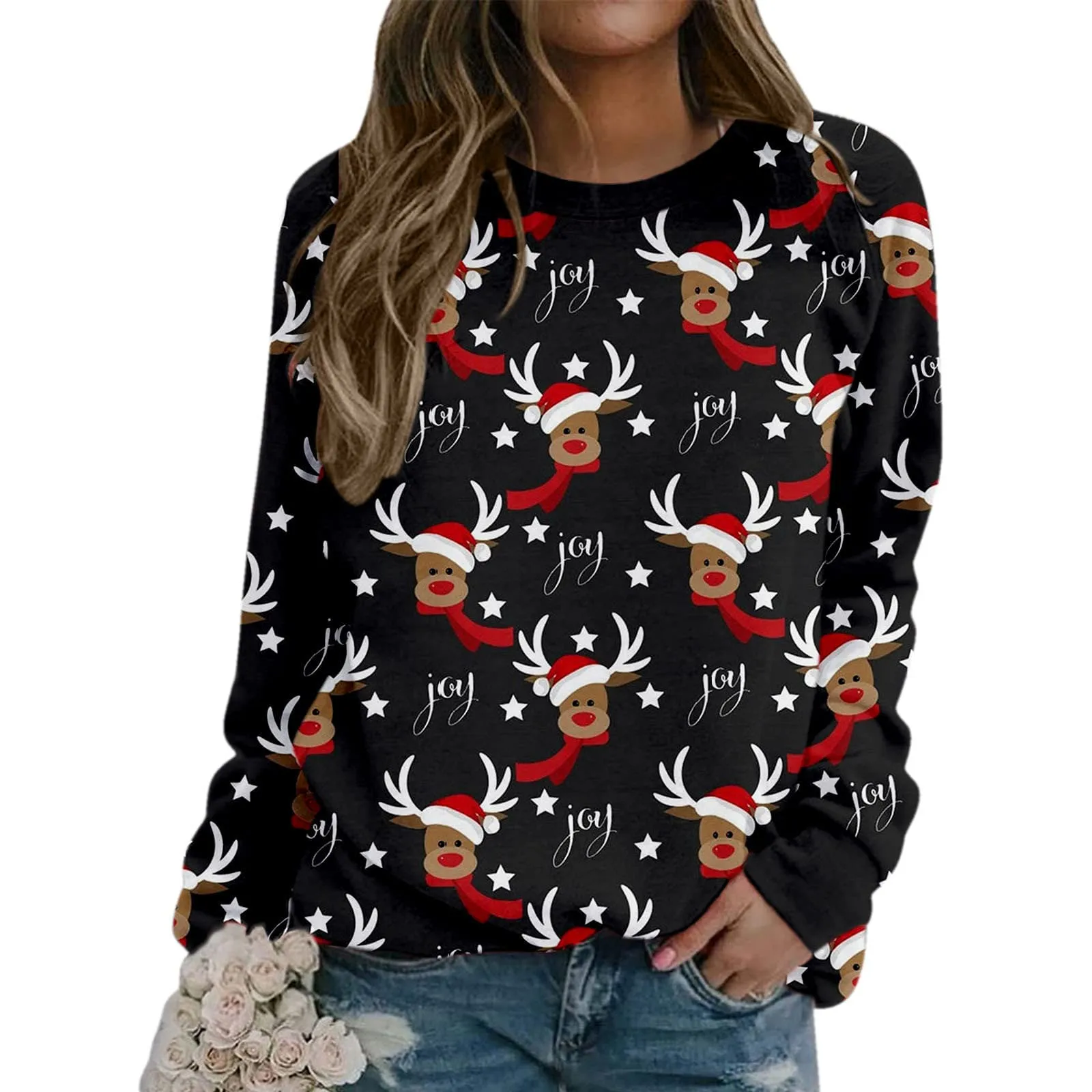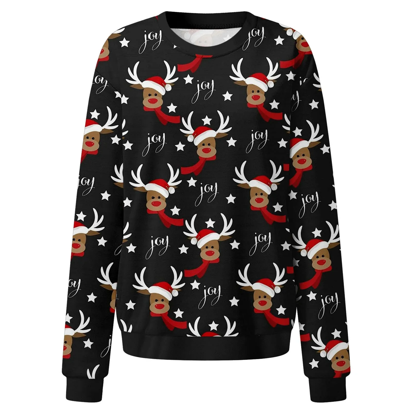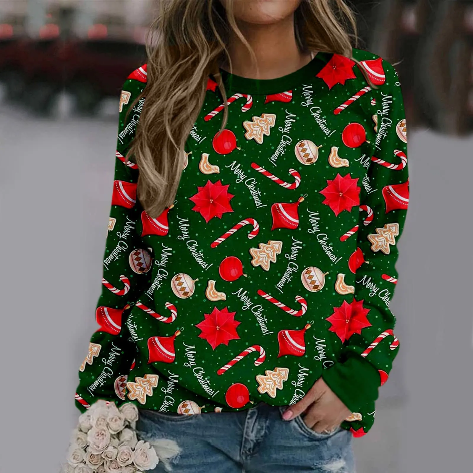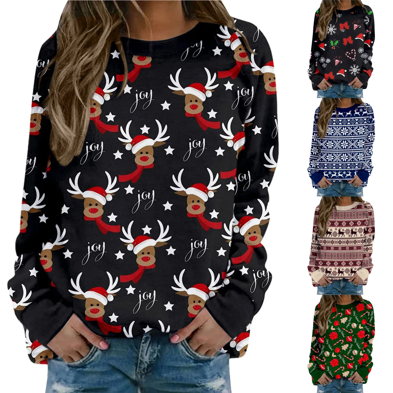 Рождественские свитера для женщин с принтом снежинки, пуловеры, Рубашки, Топы с длинным рукавом, свитер с круглым вырезом