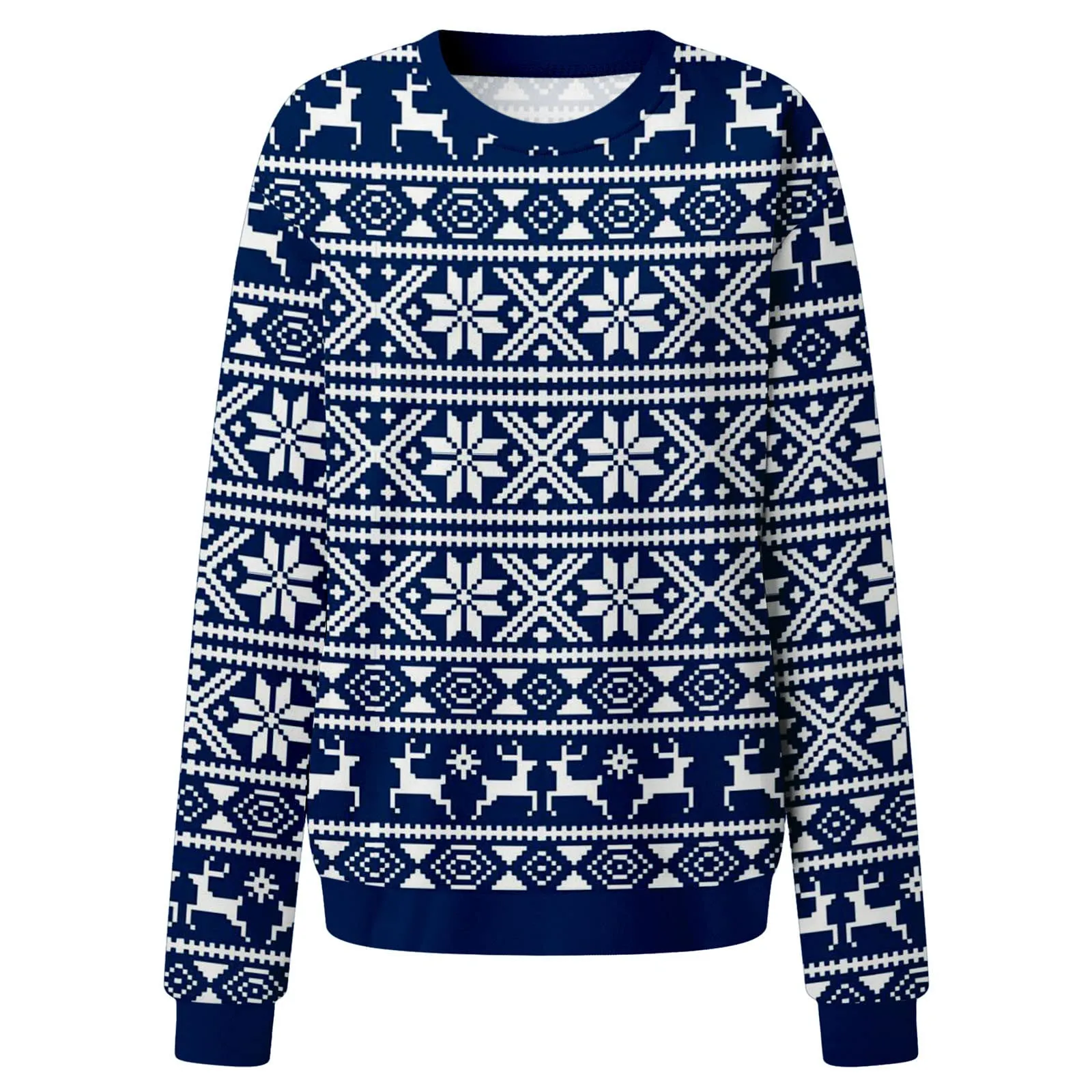 Рождественский свитер для женщин с принтом снежинки, пуловер, Рубашки, Топы с длинным рукавом, свитер с круглым вырезом