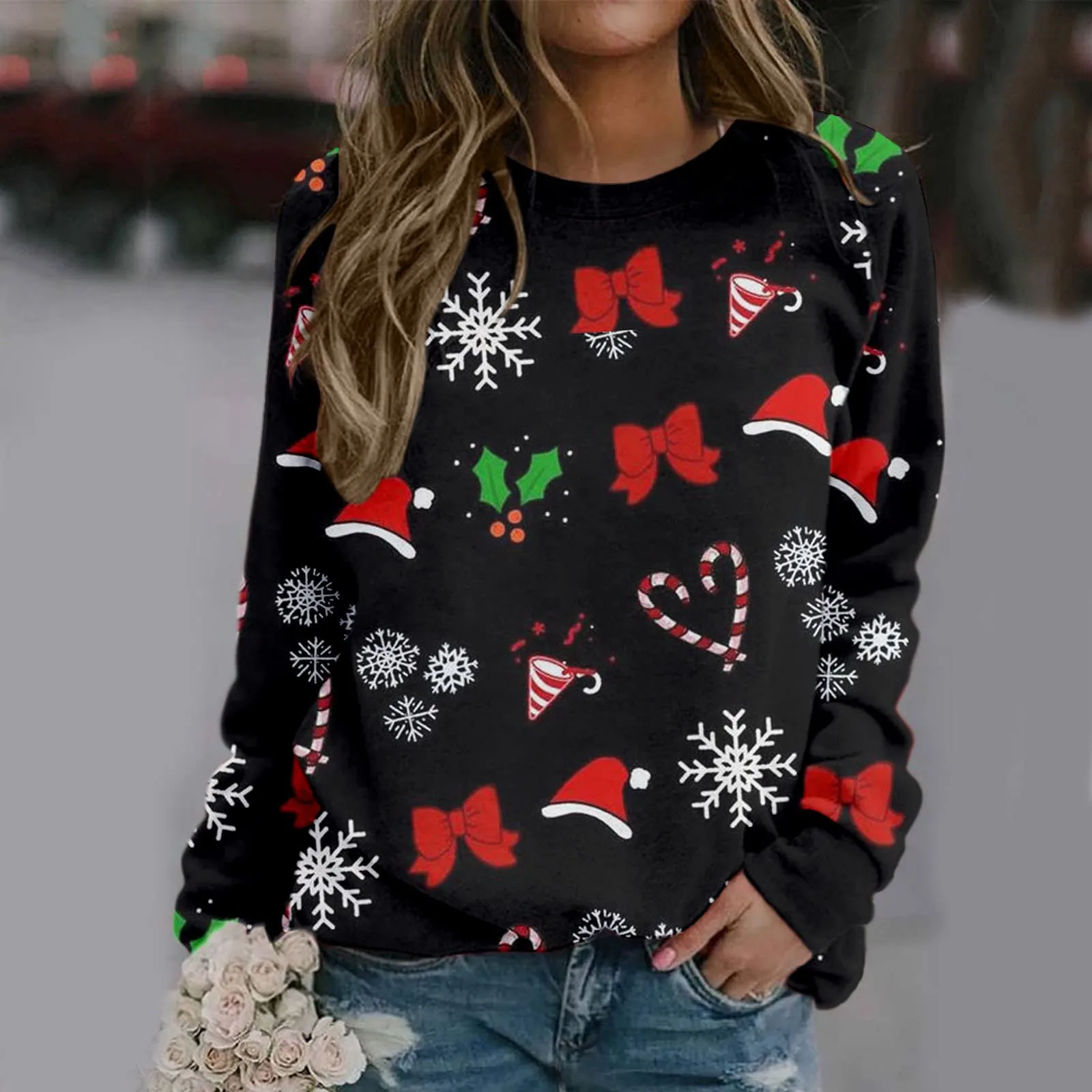 Рождественские свитшоты для женщин, пуловер с принтом снежинок, Рубашки, Топы, свитшот с длинным рукавом и круглым вырезом, женские толстовки 2022