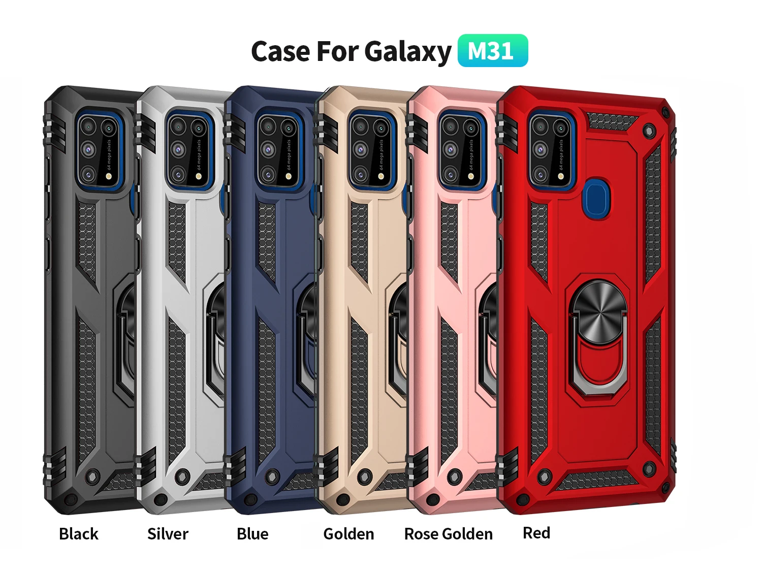Ударопрочный защитный чехол для телефона Samsung A10 A20 A7 A8 A5 J7 J5 J2 M30 M31 A9S с магнитным кольцом и подставкой, бампер, Жесткий ПК чехол