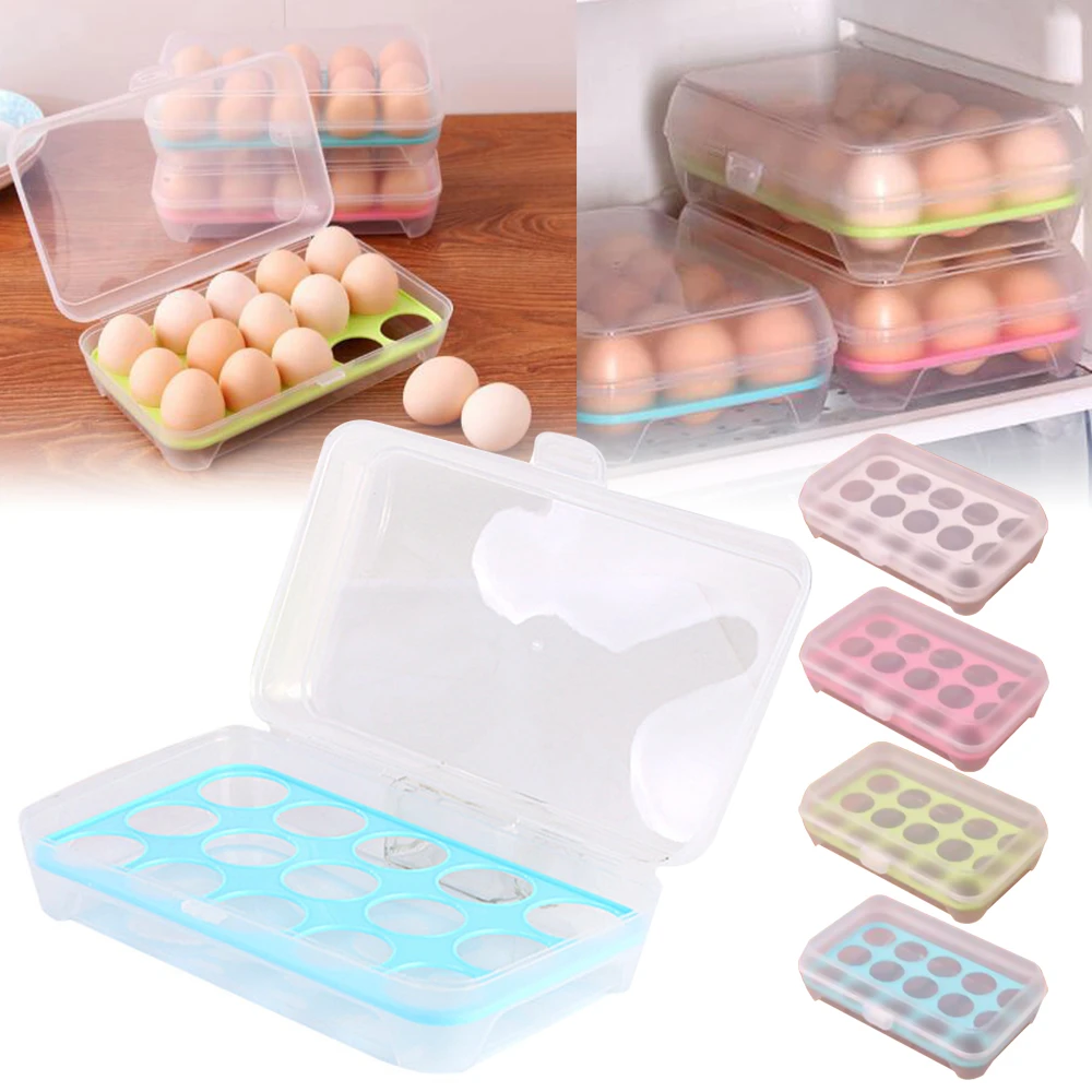 Новый портативный держатель для яиц с 15 отверстиями, полезный пластиковый поднос для яиц, держатель, коробка для хранения, контейнер-органайзер, корзина с крышкой для кухни, холодильника