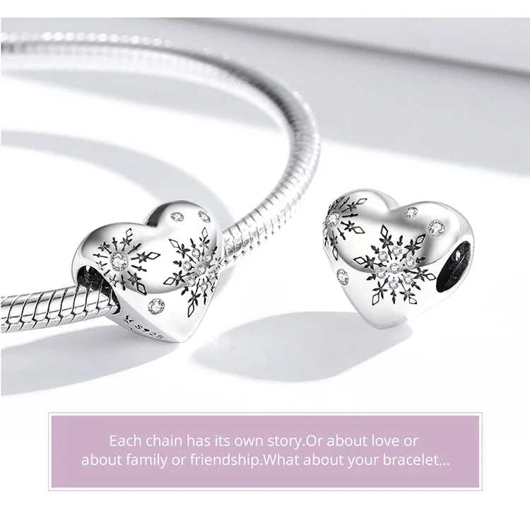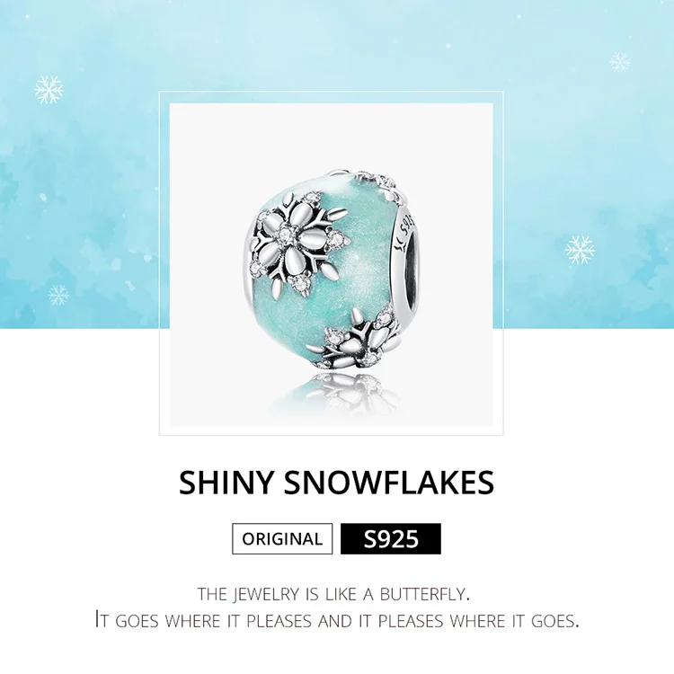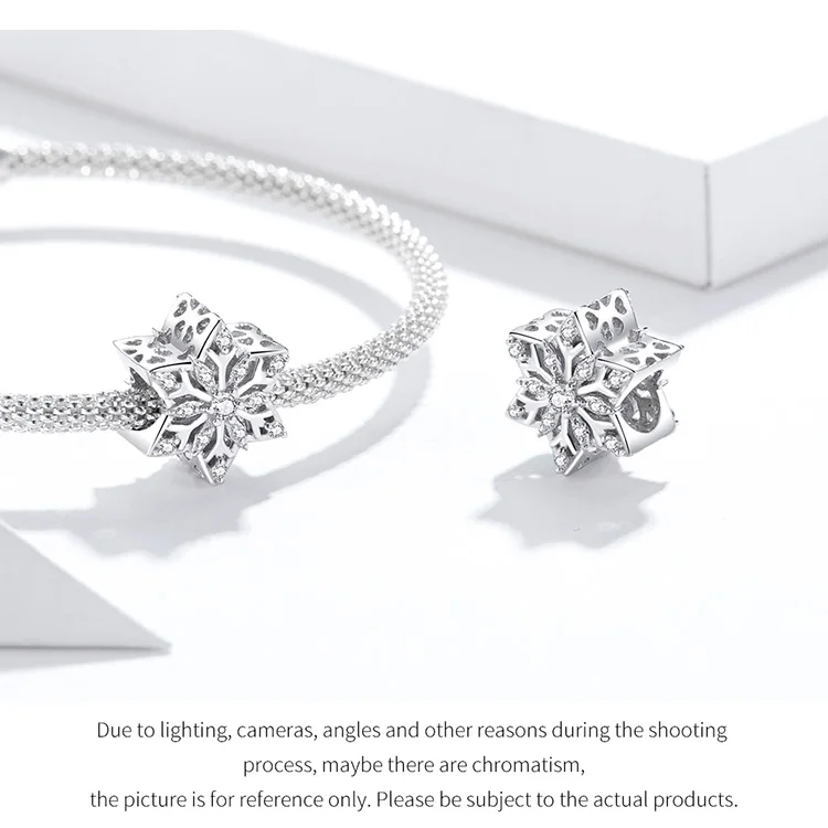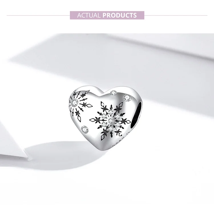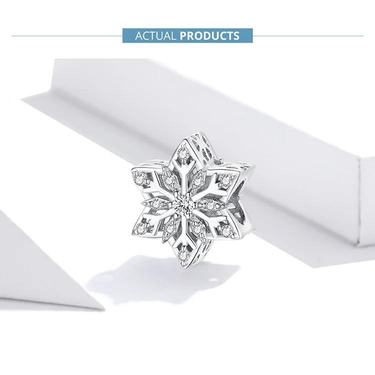 Bamoer 925 стерлингового серебра круглые бусины Снежинка Подвески кулон подходит для женщин браслет или ожерелье хорошее ювелирное изделие Рождественский подарок