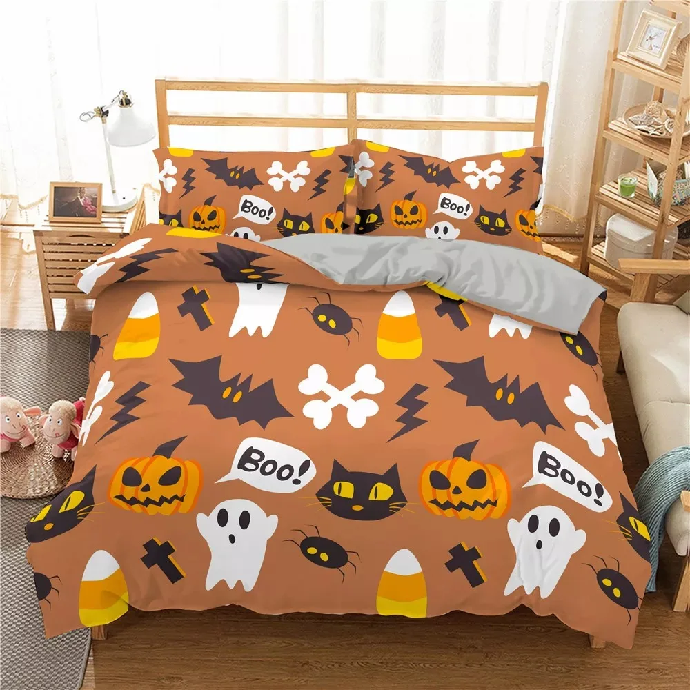 Набор пододеяльников в мультяшном стиле на Хэллоуин, Комплект постельного белья наволочка, односпальный, двойной, 23 шт., 10 цветов, полный комплект постельного белья для двуспальной кровати