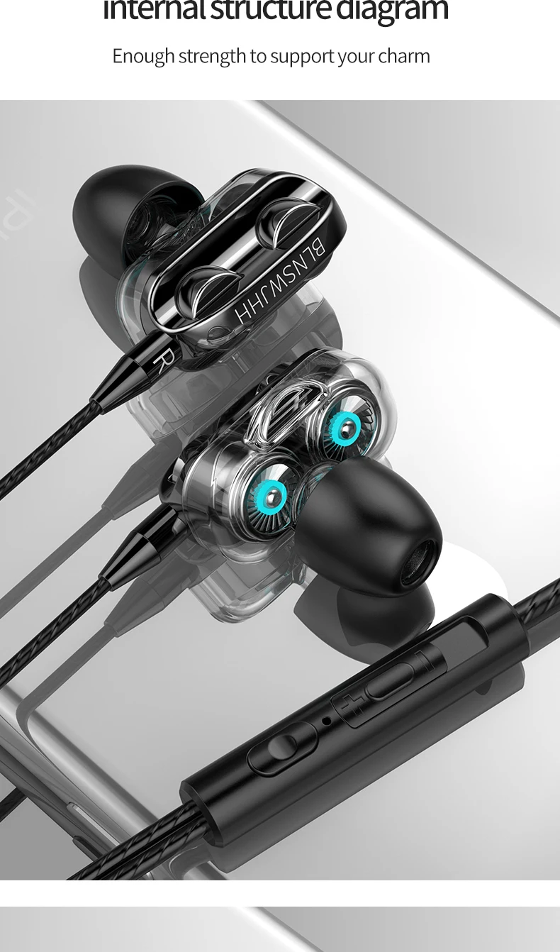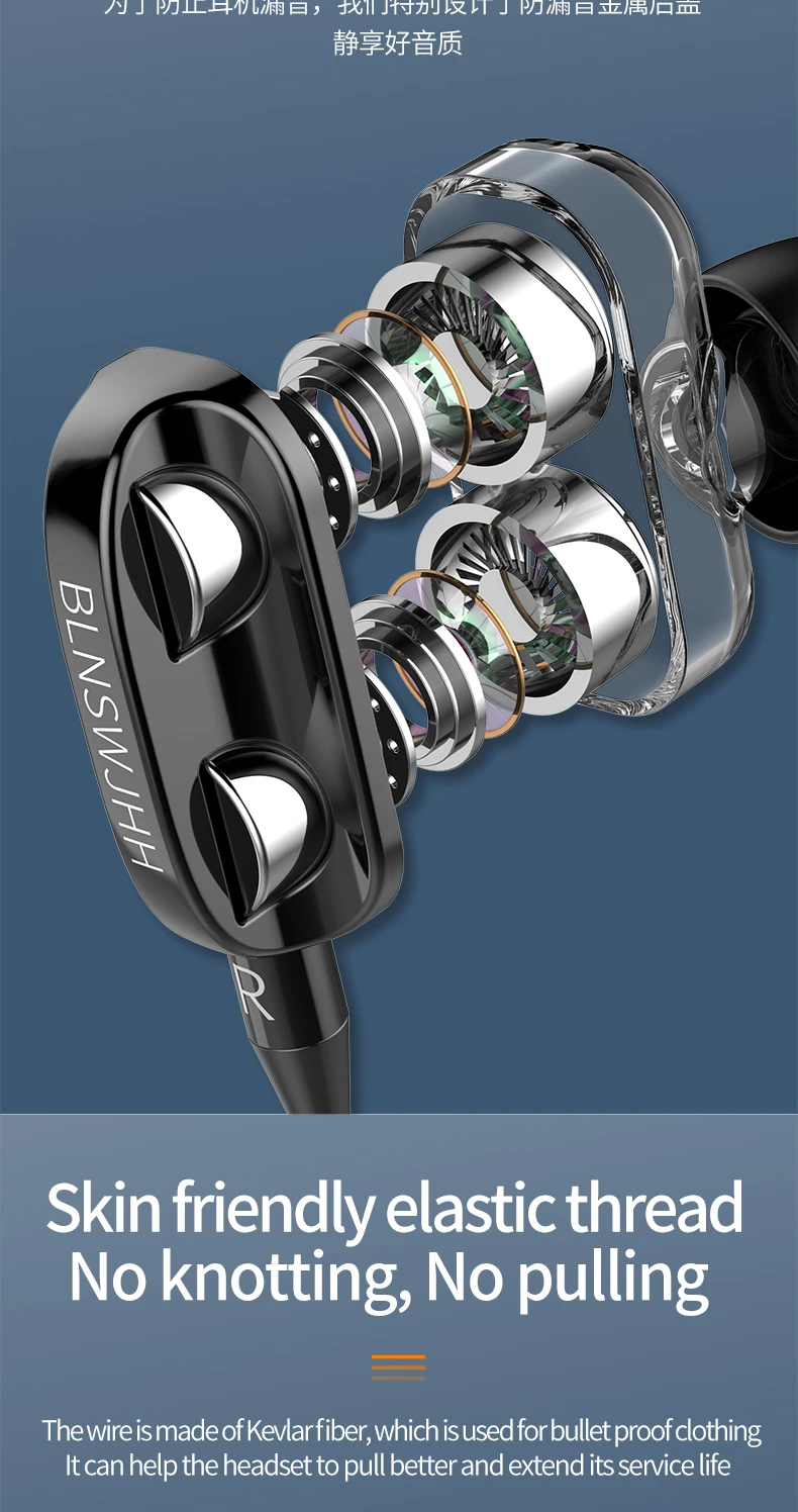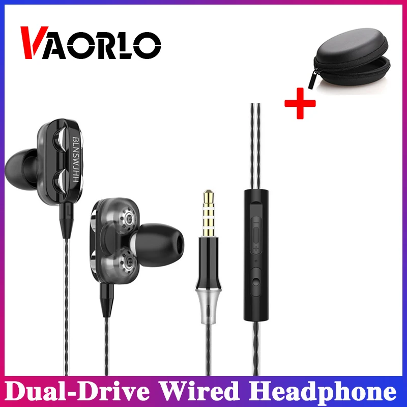 Проводные наушники VAORLO с двойным приводом, 3,5 мм, Hi-Fi стерео музыкальные наушники с микрофоном, спортивные Игровые наушники-вкладыши для iPhone, Samsung, Huawei, Xiaomi