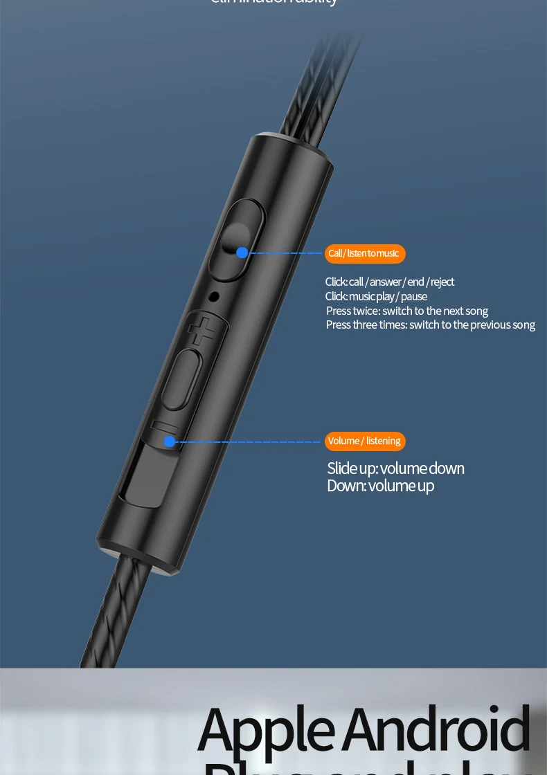 Подвижная катушка и подвижная железная комбинация создают тяжелые басы и качество стереомузыки.Эргономичный дизайн, идеально подходит для вашего уха и не будет легко падать.3,5 мм штекер подходит для большинства телефонов на мобильные телефоны, планшеты, MP3, MP4 и т. д.Тяжелый бас, стерео, в ухо, проводной, универсальныйОперационная системаВызов/Прослушивание песниНажмите: вызов/ответ/повесить/отклонитьНажмите: воспроизведение музыки/паузаНажмите дважды: Переключитесь на следующую песнюНажмите три раза: Переключитесь на предыдущую песнюГромкость/Прослушивание песенСлайд вверх: Уменьшение громкостиРаздвижные: Увеличение громкости