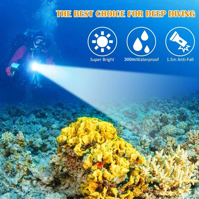 XHP70 Профессиональный фонарик для дайвинга 18650 Мощный подводный светодиодный фонарик IPX8 Водонепроницаемый мощный фонарь для дайвинга