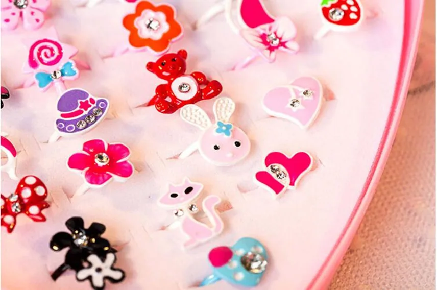 2/10/36 шт. детские милые кольца с рисунком в Корейском стиле кольцо каваи регулируемые Цветочные сувениры детские подарки на день рождения