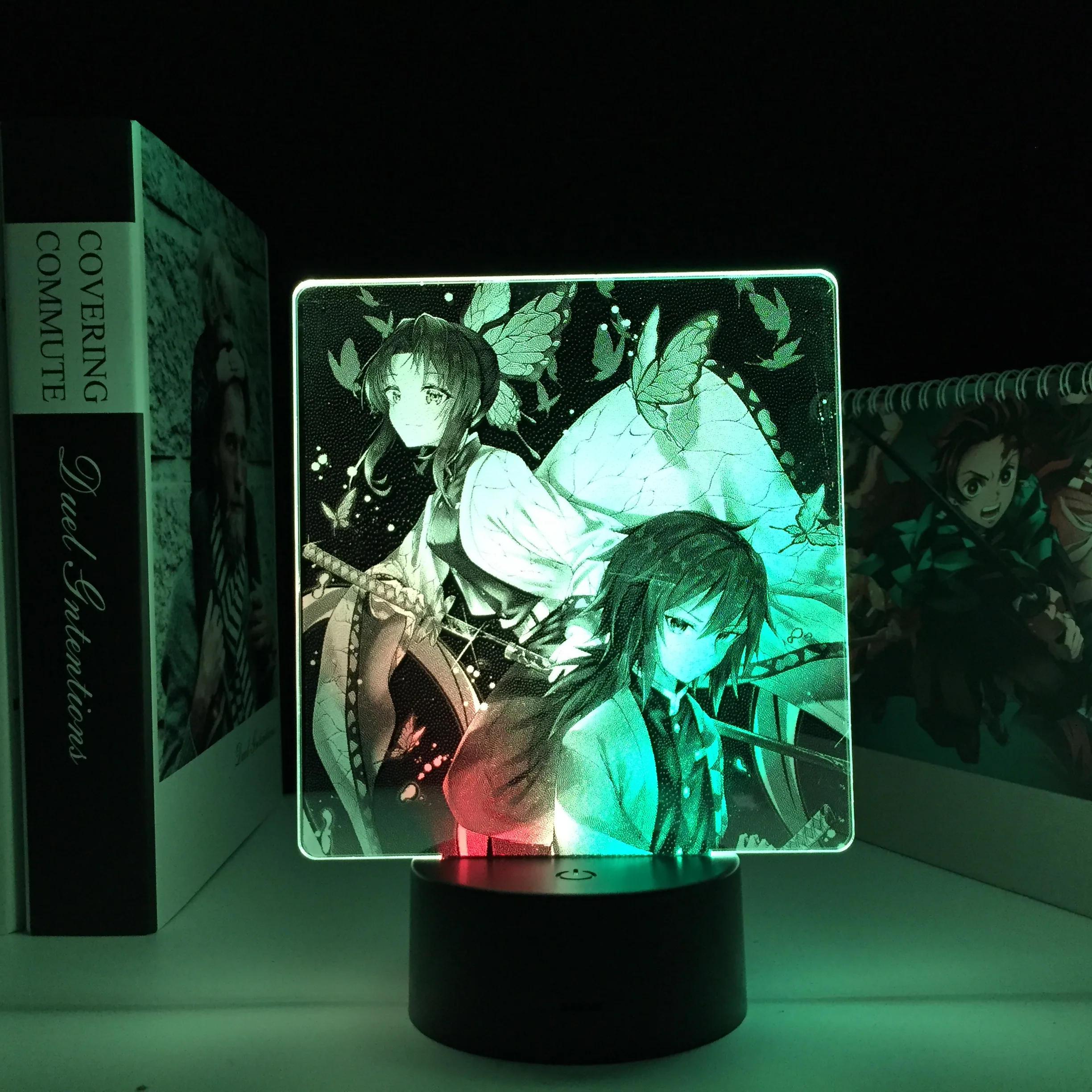 Аниме, рассекающий демонов, кочоу, шинобу, томиока, гиюу, светодиодная лампа, двухцветный подарок на день рождения, декор для комнаты, манга, двухцветный светодиодный Настольный светильник