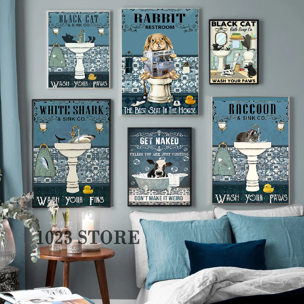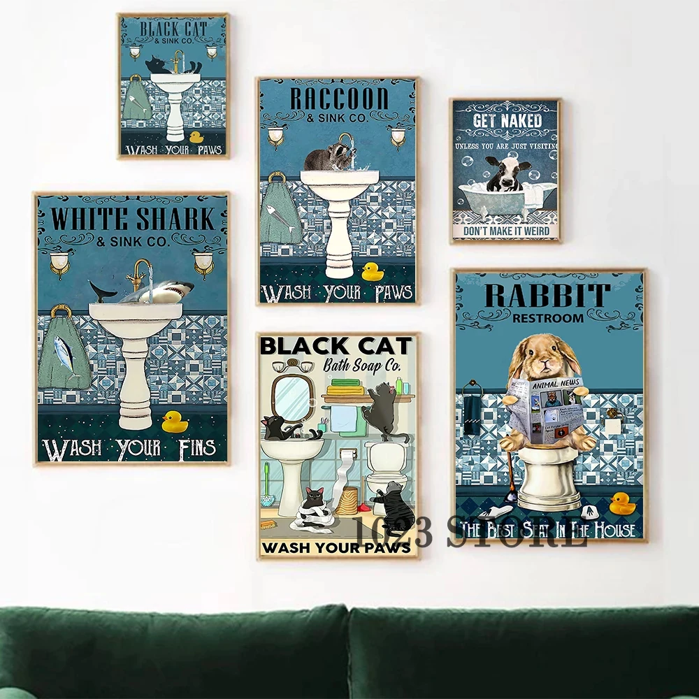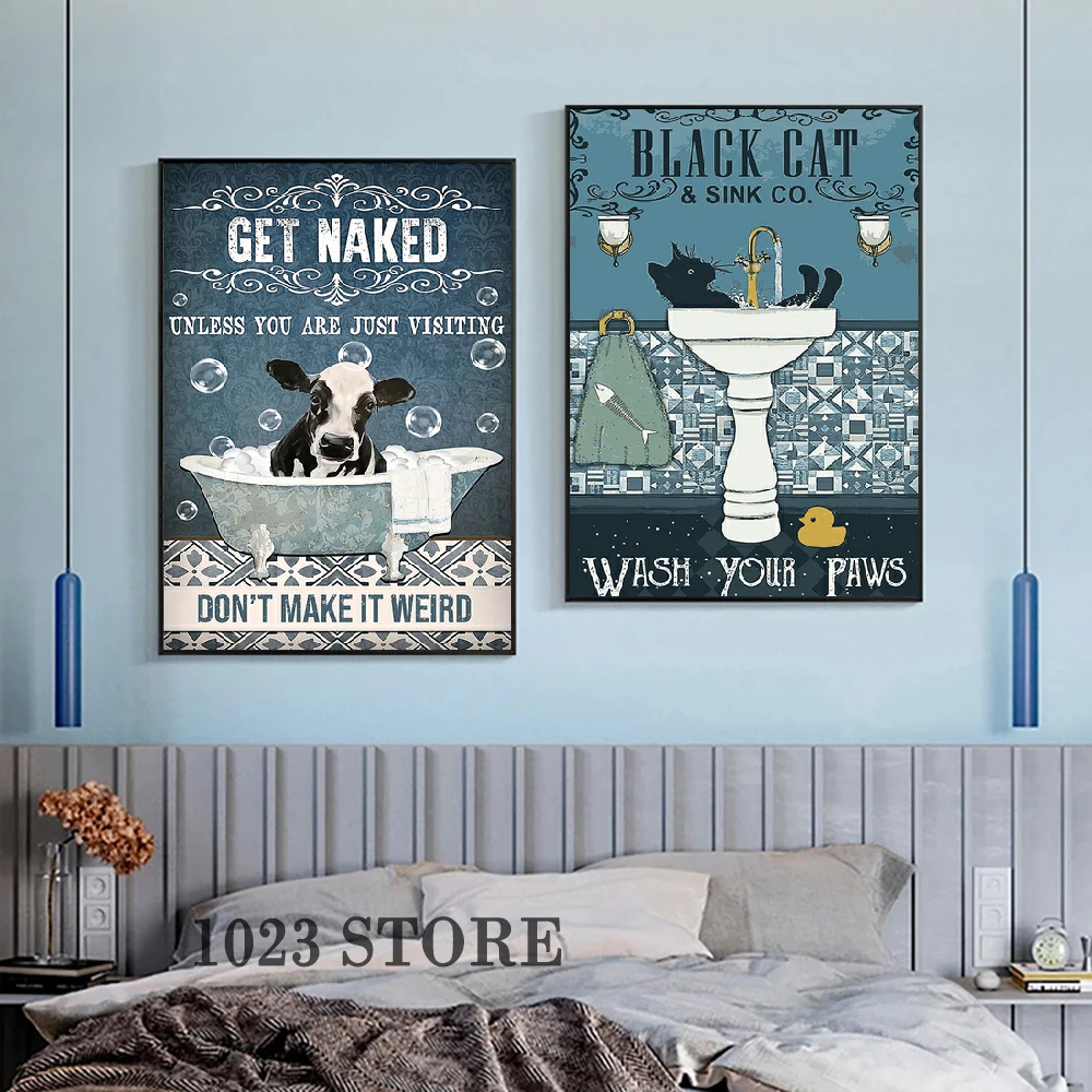 Черная кошка, Акула, стиль ретро, плакат, Обнаженная фотография, настенная роспись, современный декор для домашней комнаты, картины