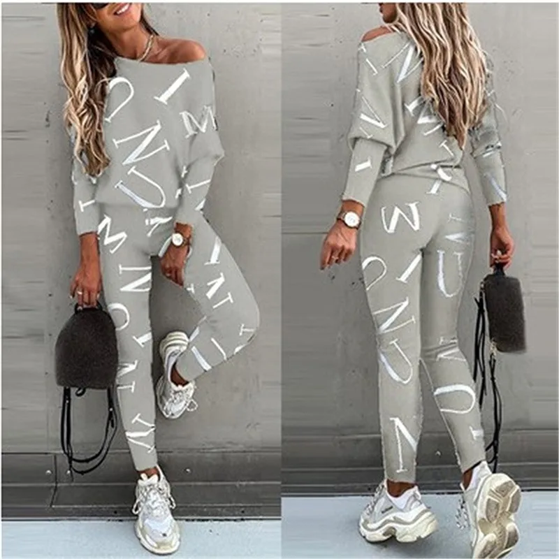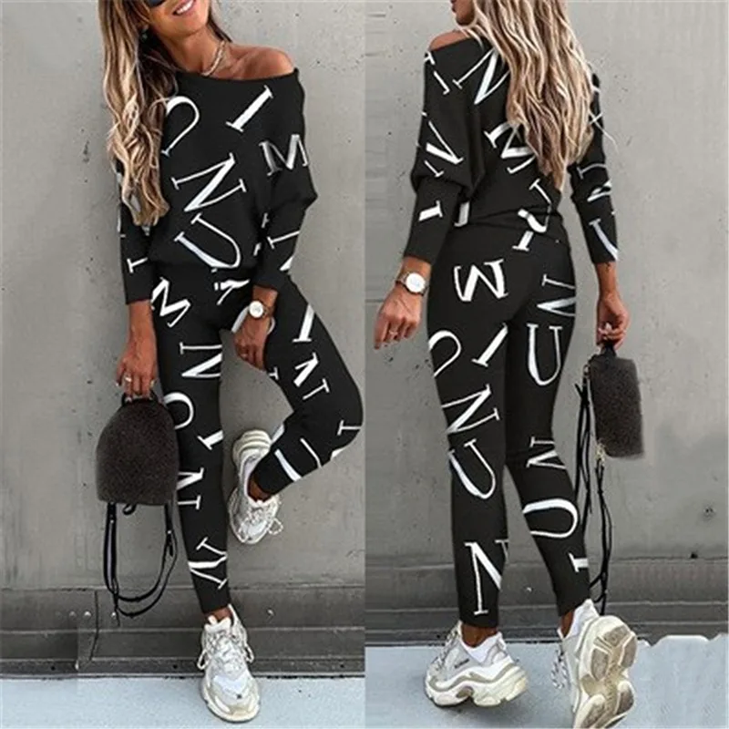 Весенне-осенняя спортивная одежда, комплект из 2 предметов, женские штаны с буквенным принтом, толстовка с длинными рукавами, спортивные штаны, спортивный костюм