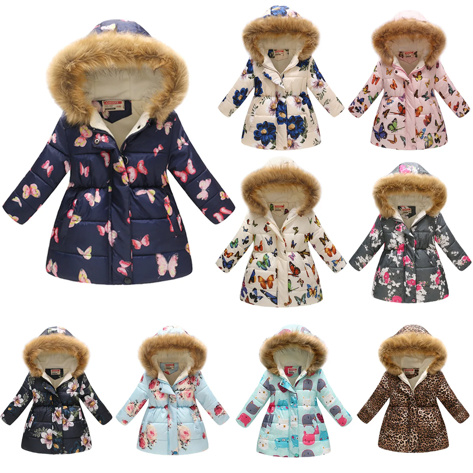 Пальто для маленьких девочек, куртка с цветочным принтом для малышей, парки, толстовки, топы, зимнее плотное теплое ветрозащитное пальто, верхняя одежда, куртка для девочек