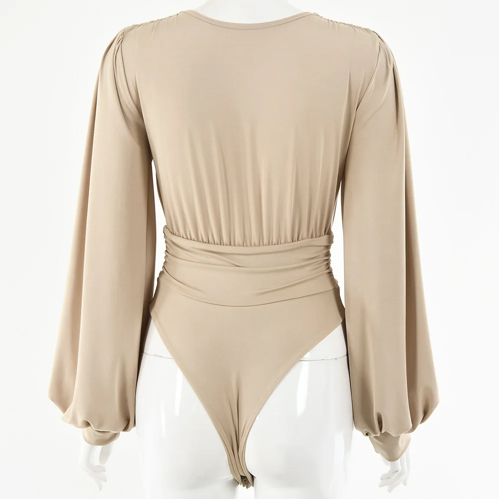 Соблазнительное облегающее боди с пышными рукавами и длинным рукаво...