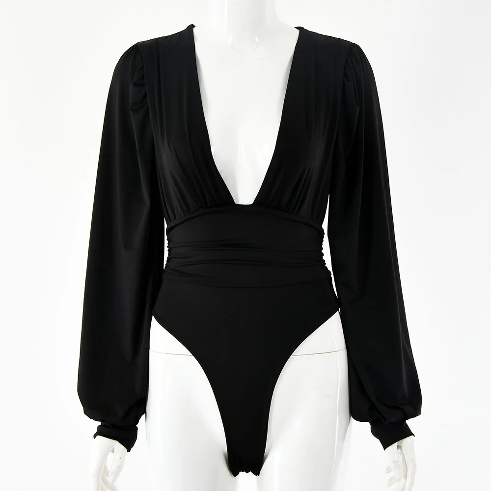 Женское боди с длинным рукавом и глубоким V-образным вырезом