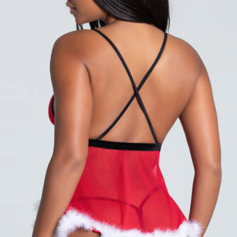 Сексуальное рождественское платье, женская прозрачная ночная рубашка, комплект стрингов, чувственное нижнее белье, порнокостюм, рождественское Эротическое нижнее белье