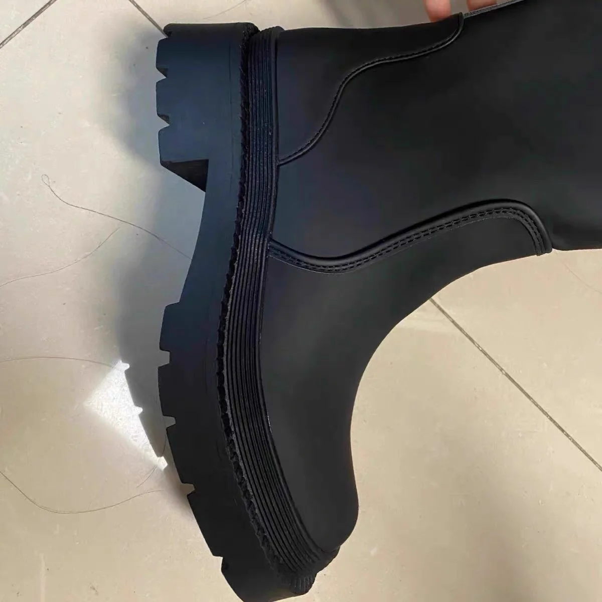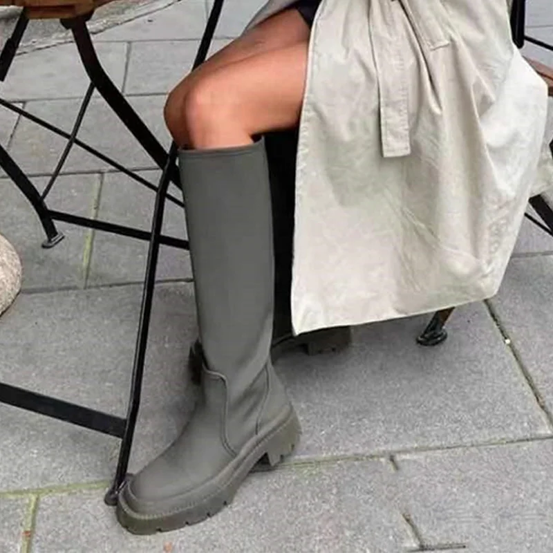 Женские высокие сапоги из искусственной кожи, на низком каблуке, до колена, модная женская обувь, без застежки, на платформе, Осень-зима 2021