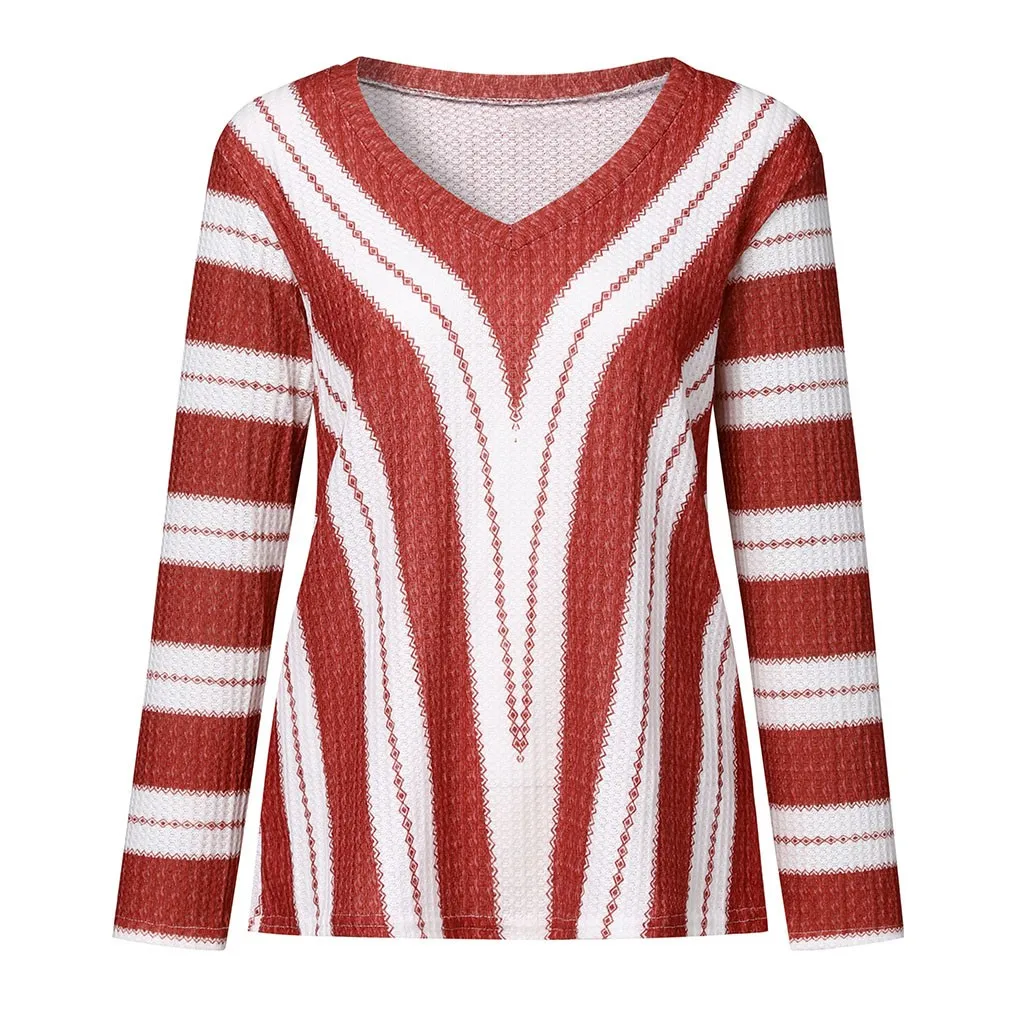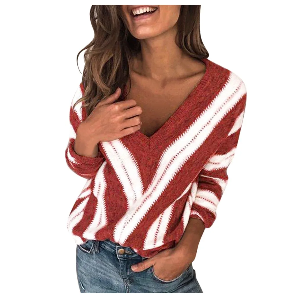Женский трикотажный Свитер в полоску, Повседневный Свитер-туника с длинным рукавом и V-образным вырезом, модель 2021