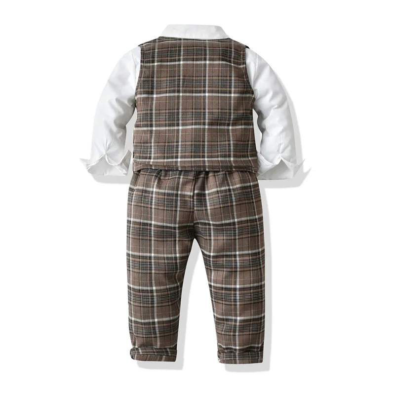 Новинка Осень хлопковая рубашка с длинными рукавами Для Мальчиков Облегающий костюм брюки жилет комплект из трех предметов 2021 джентльменский Британский костюм для детей