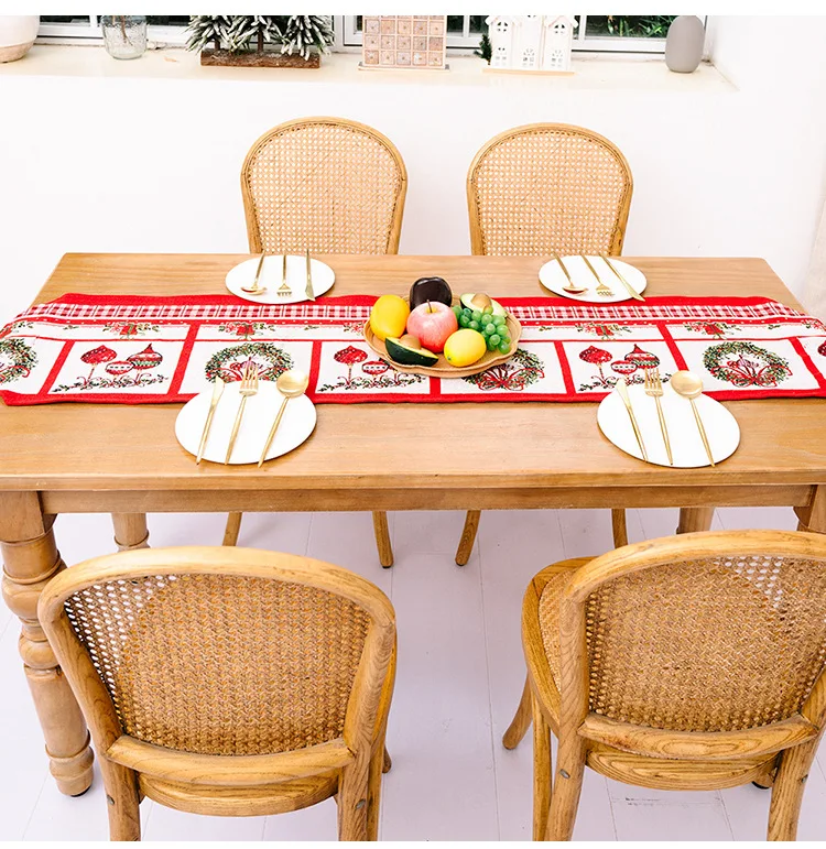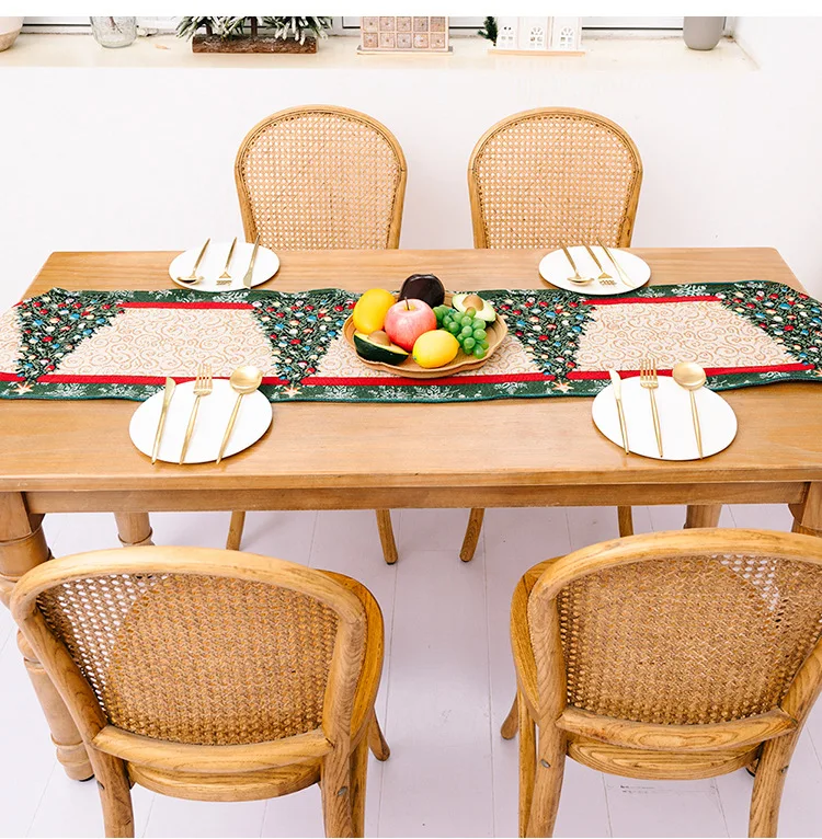 180x35 см Рождественская скатерть для скатерти, скатерть, длинный зеленый красный полиэстер хлопок с принтом, Рождественское украшение, 2022 новый год