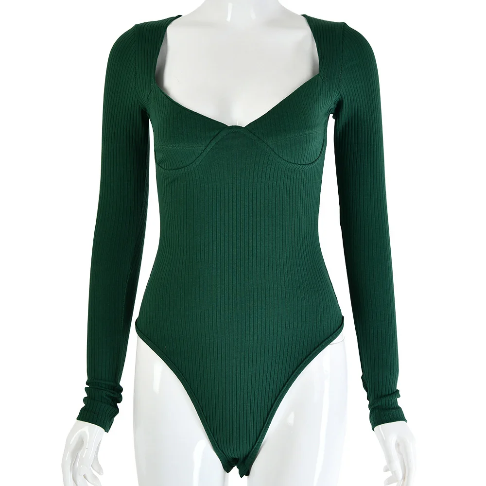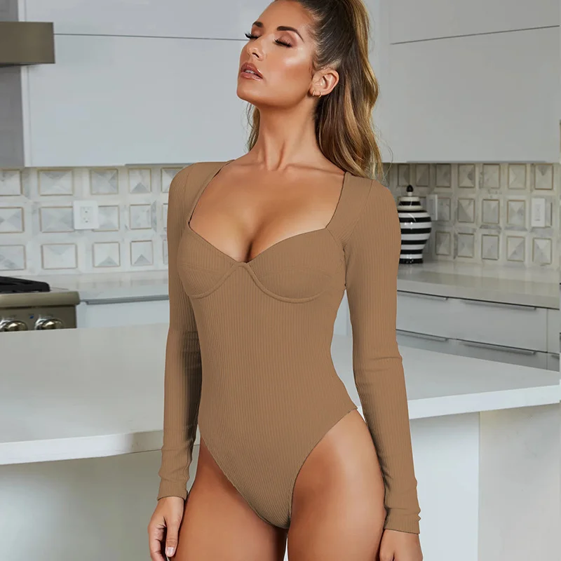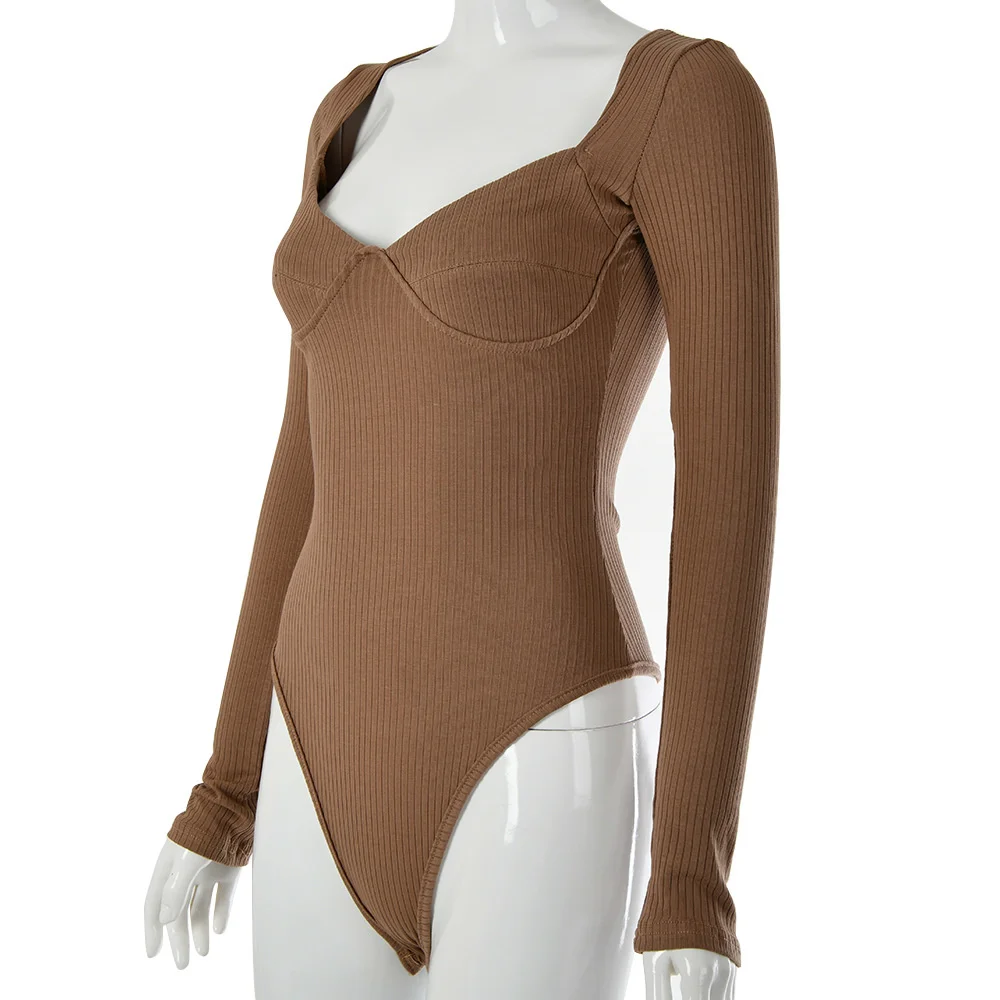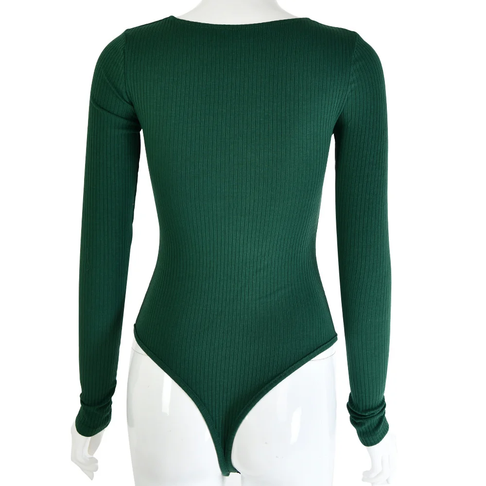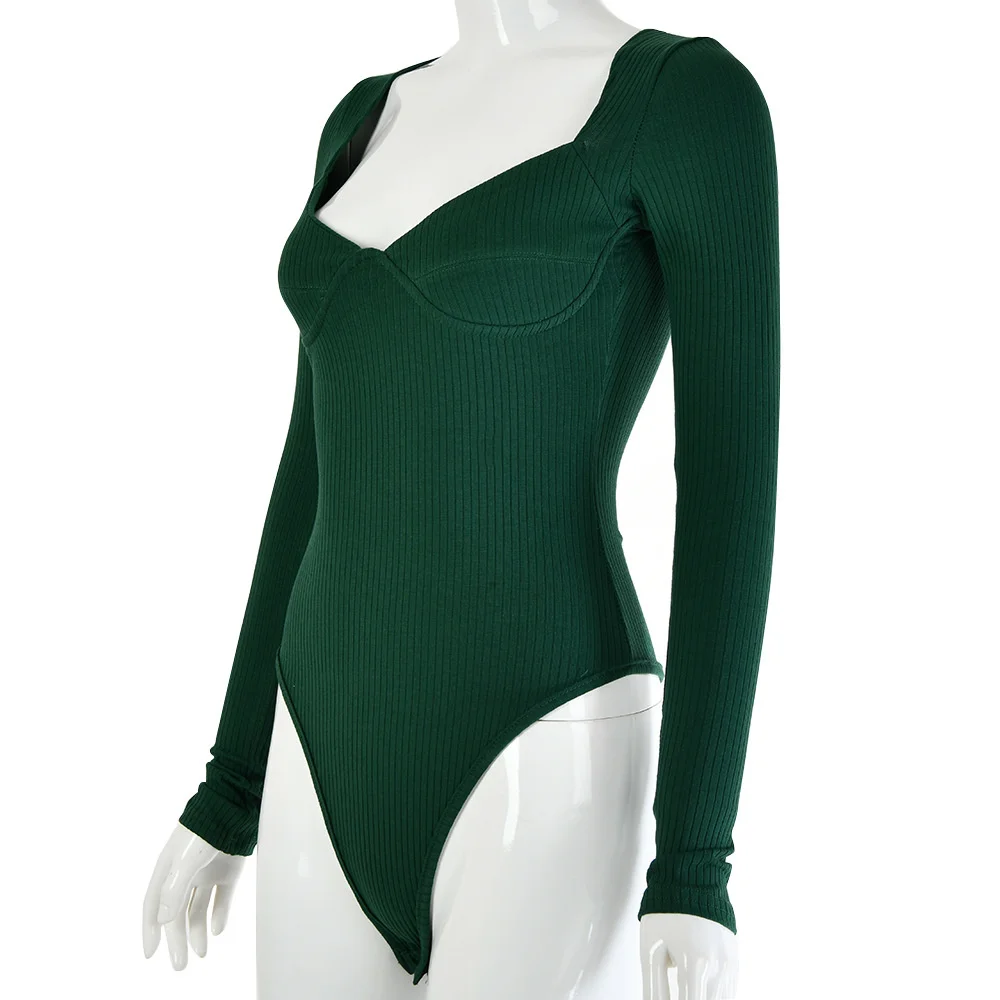 Женское трикотажное боди в рубчик, с квадратным вырезом и длинным р...
