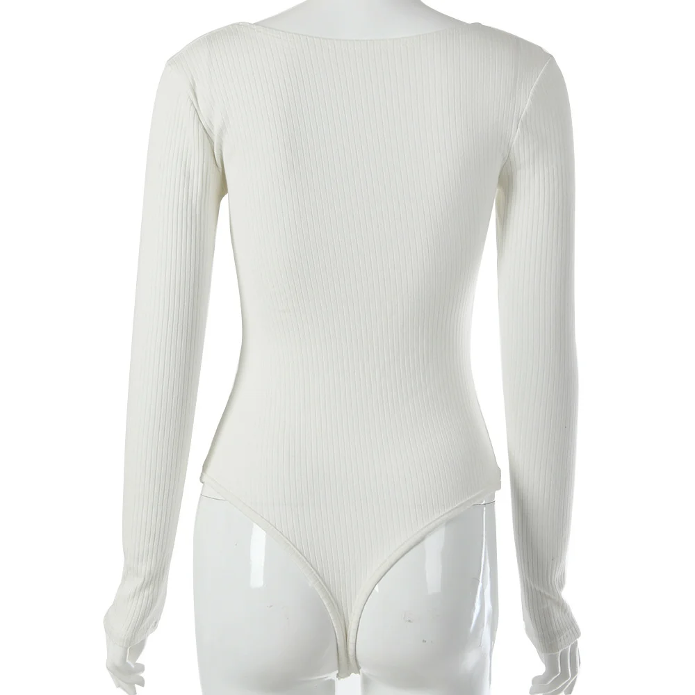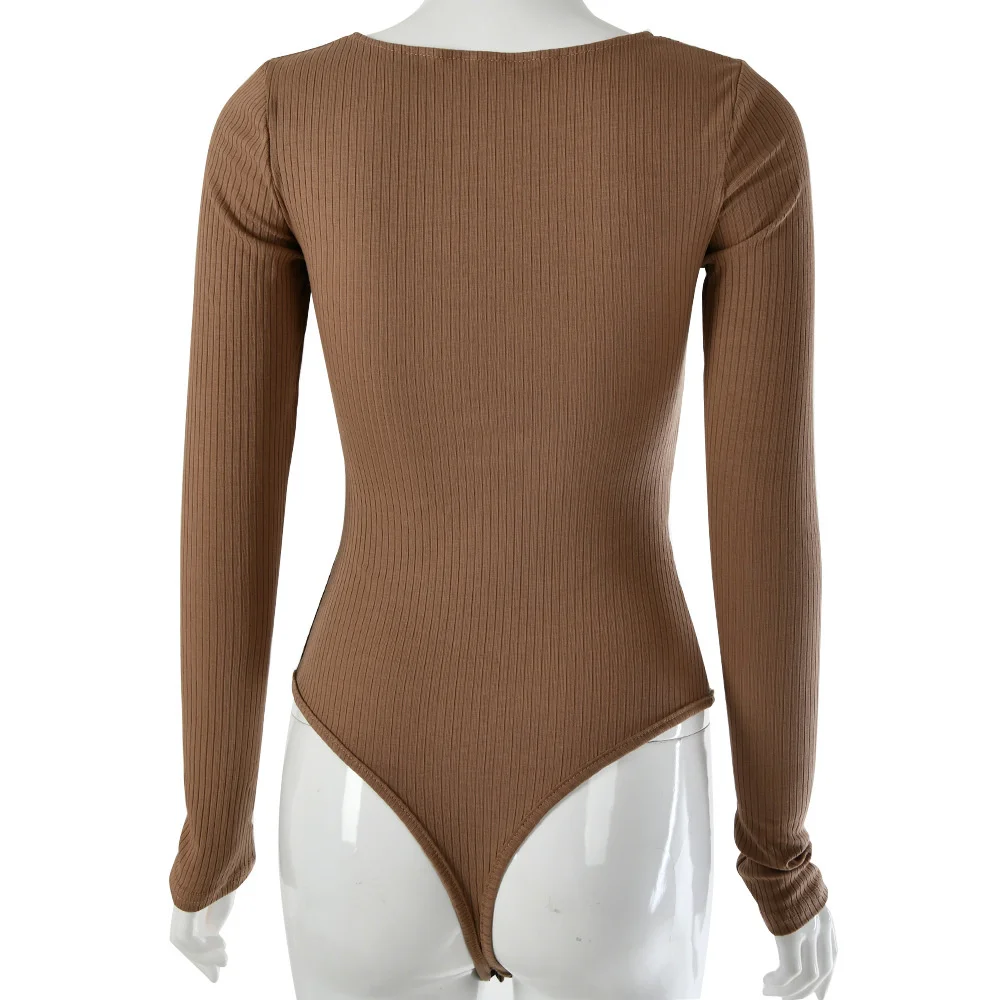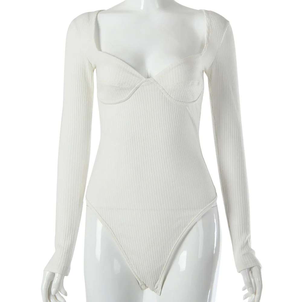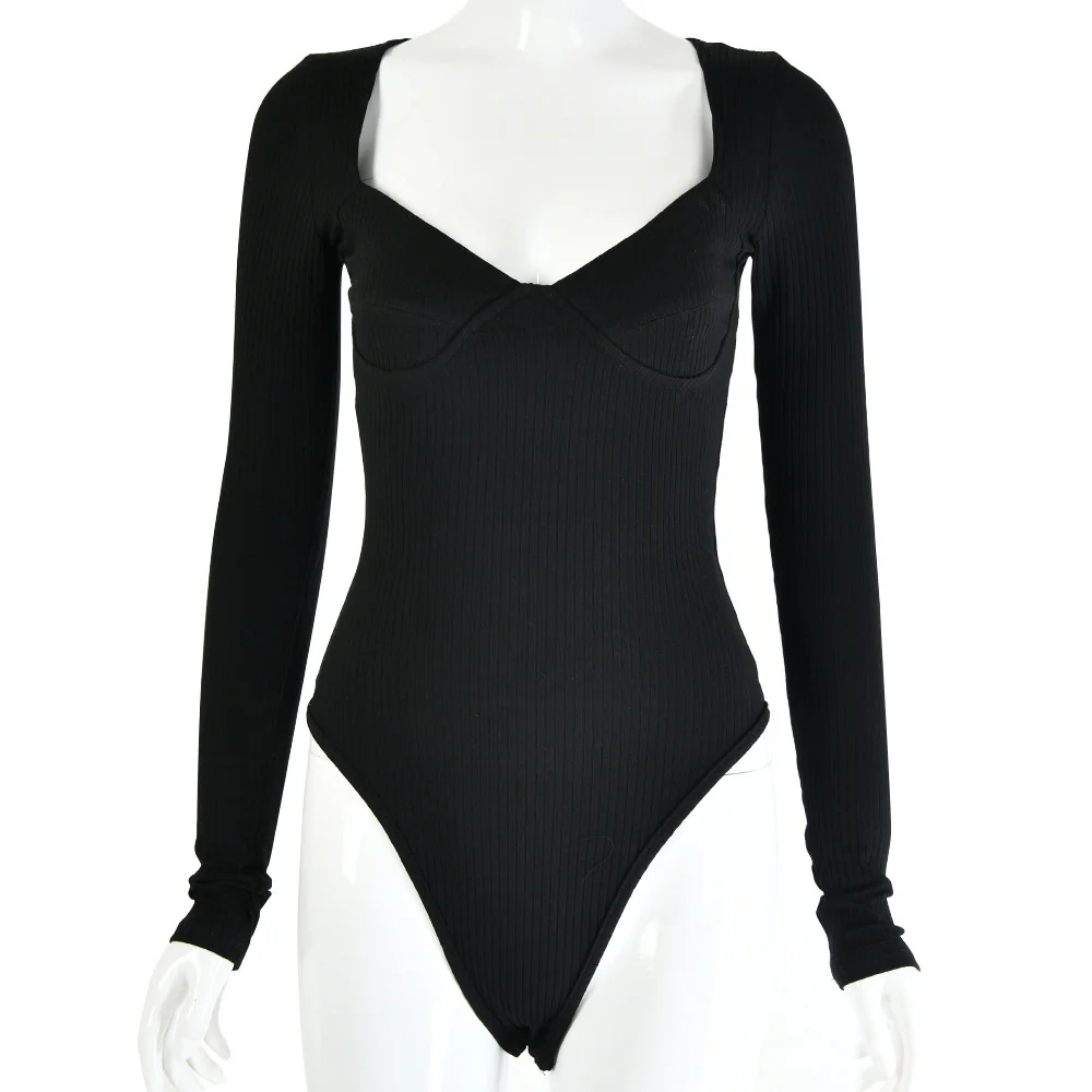 Женское трикотажное боди в рубчик, с квадратным вырезом и длинным р...