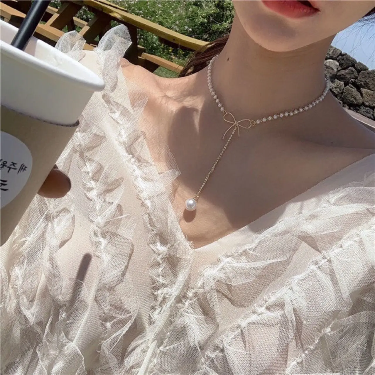 1 шт. Новые бусины для женщин, цепочка на шею, жемчужное ожерелье-чокер, ювелирные изделия золотого цвета, подвесной воротник для девушек, модная новинка