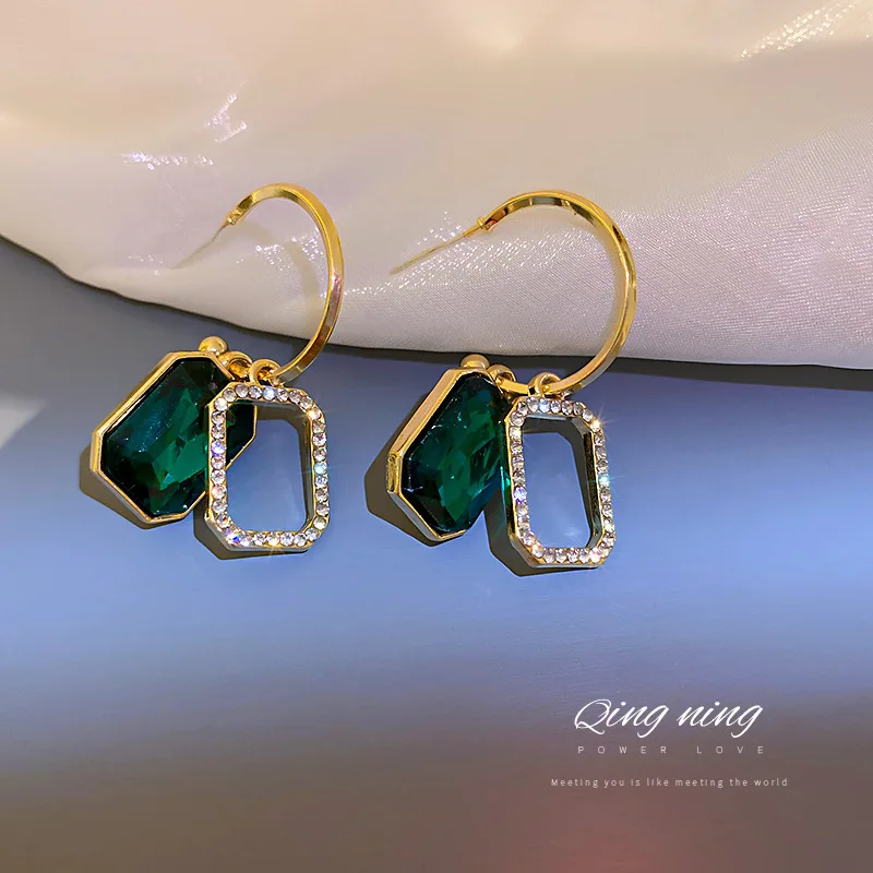 Роскошные квадратные висячие серьги с зелеными кристаллами для женщ...