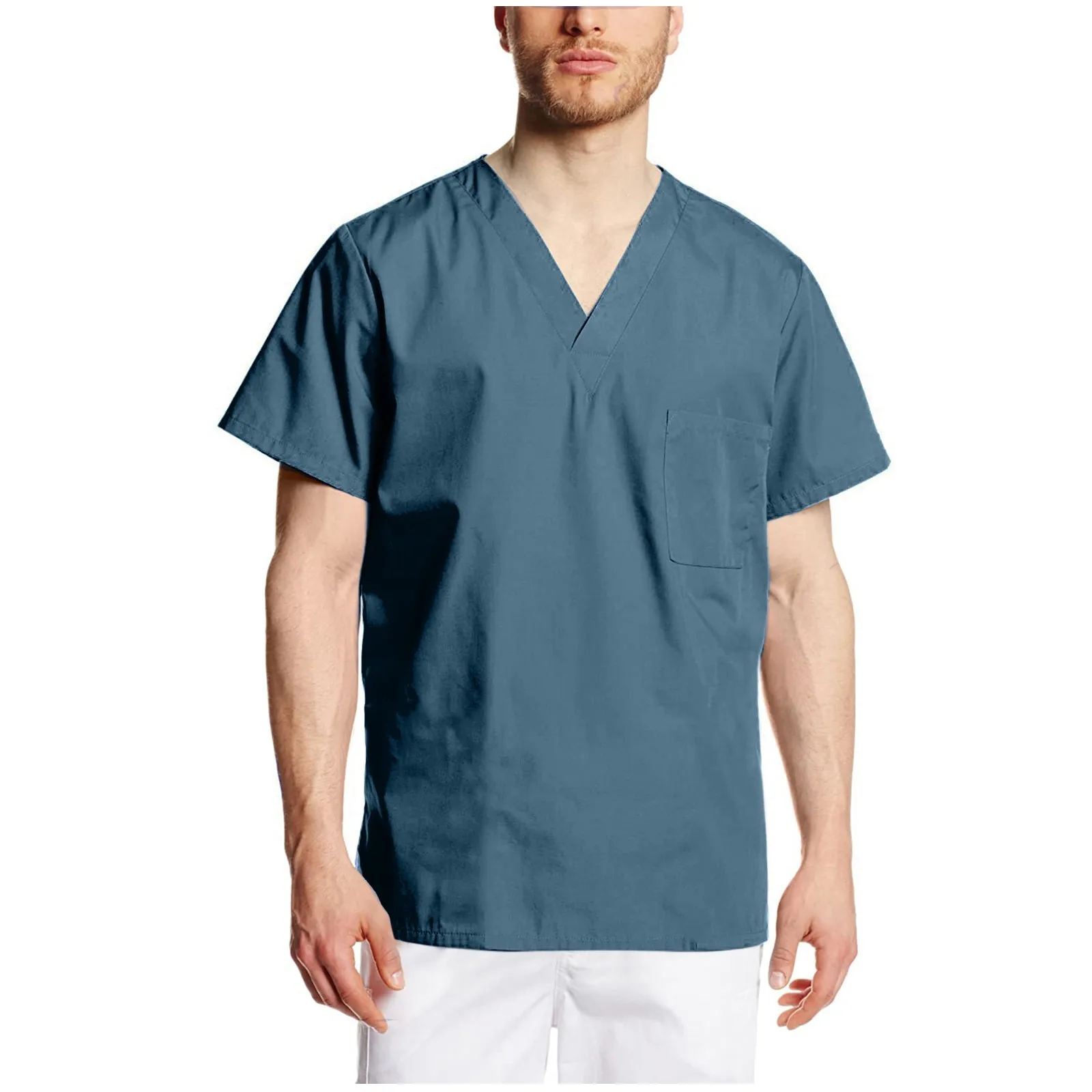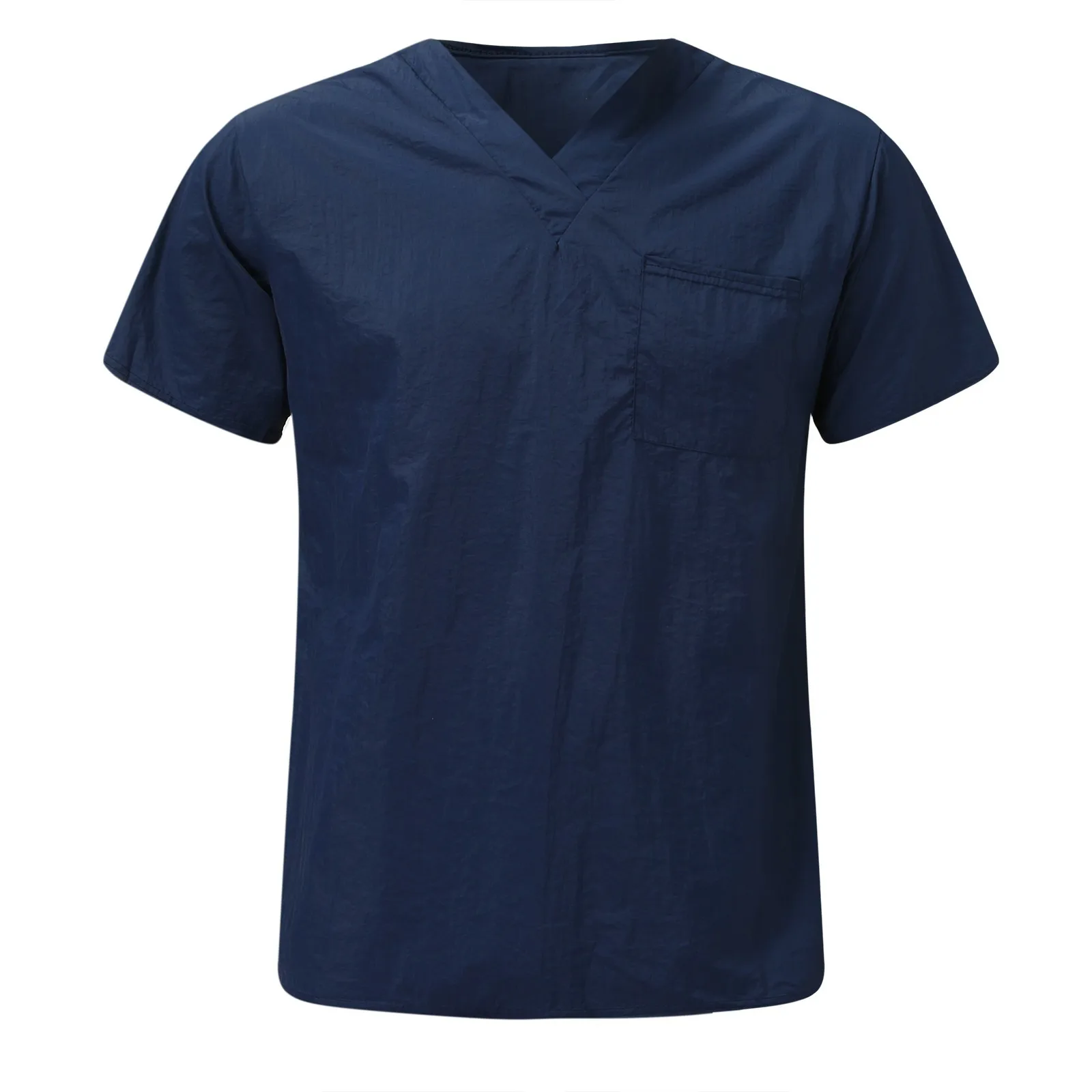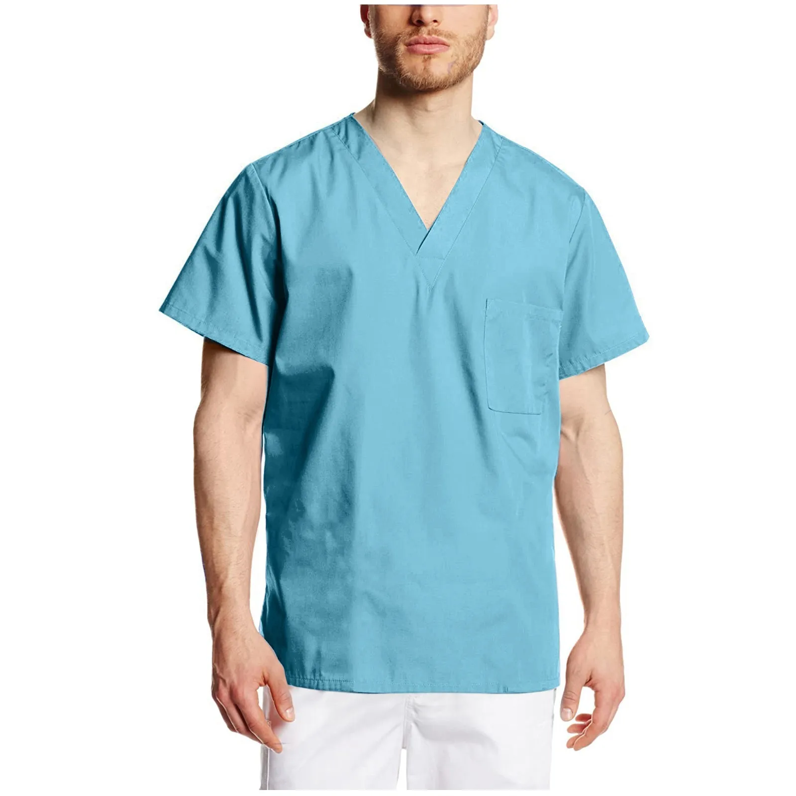 Униформа медсестры, мужские топы, однотонные футболки с коротким рукавом и карманами, блузка, рабочая одежда для врачей, большие скрабы, рабочая одежда для ухода