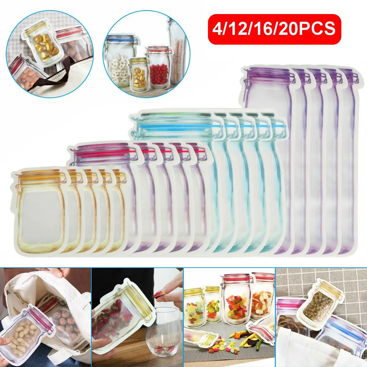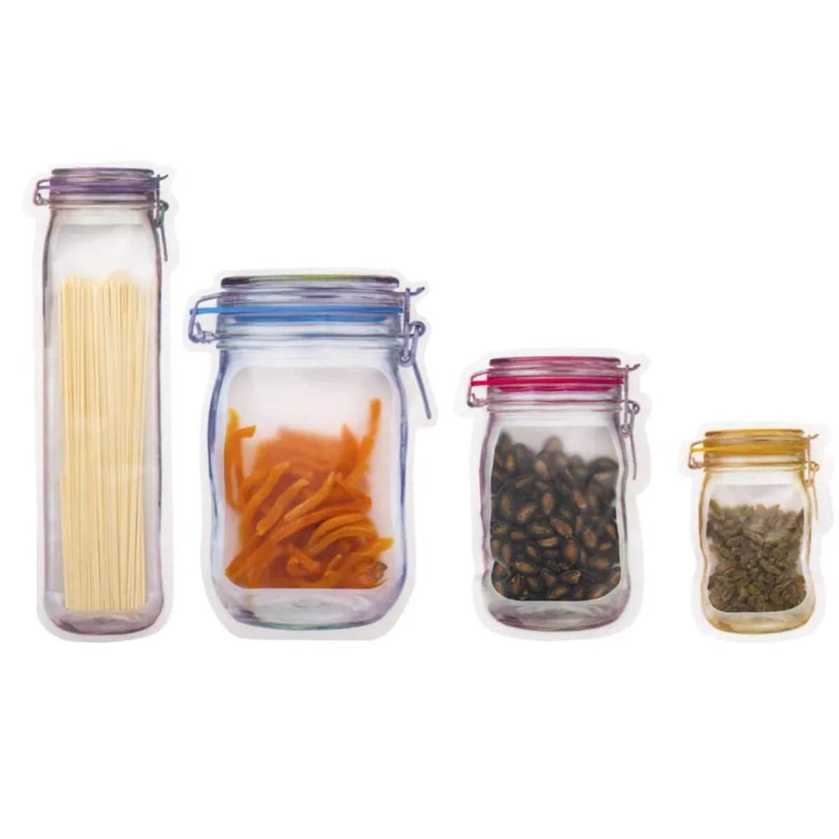 Многоразовые мешки для бутылок Мейсон, банка для хранения еды, гайки, бусины для закусок, контейнер на молнии