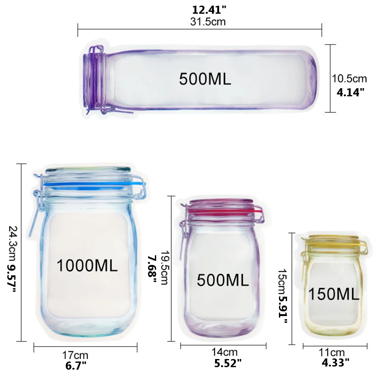 -【Предотвращает конденсацию пищи и влагу】: Эти закрывающиеся пакеты в форме банки помогут сохранить свежесть пищи в течение более длительного периода времени; Система герметизации позволит хранить все виды закусок, печенья, фруктов, овощей, печенья, бутербродов, свежие орехи и т. д.