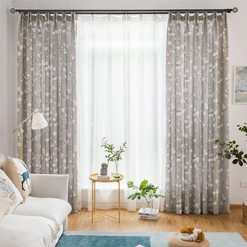 Занавески на окна в китайском пасторальном стиле с принтом в сканди...