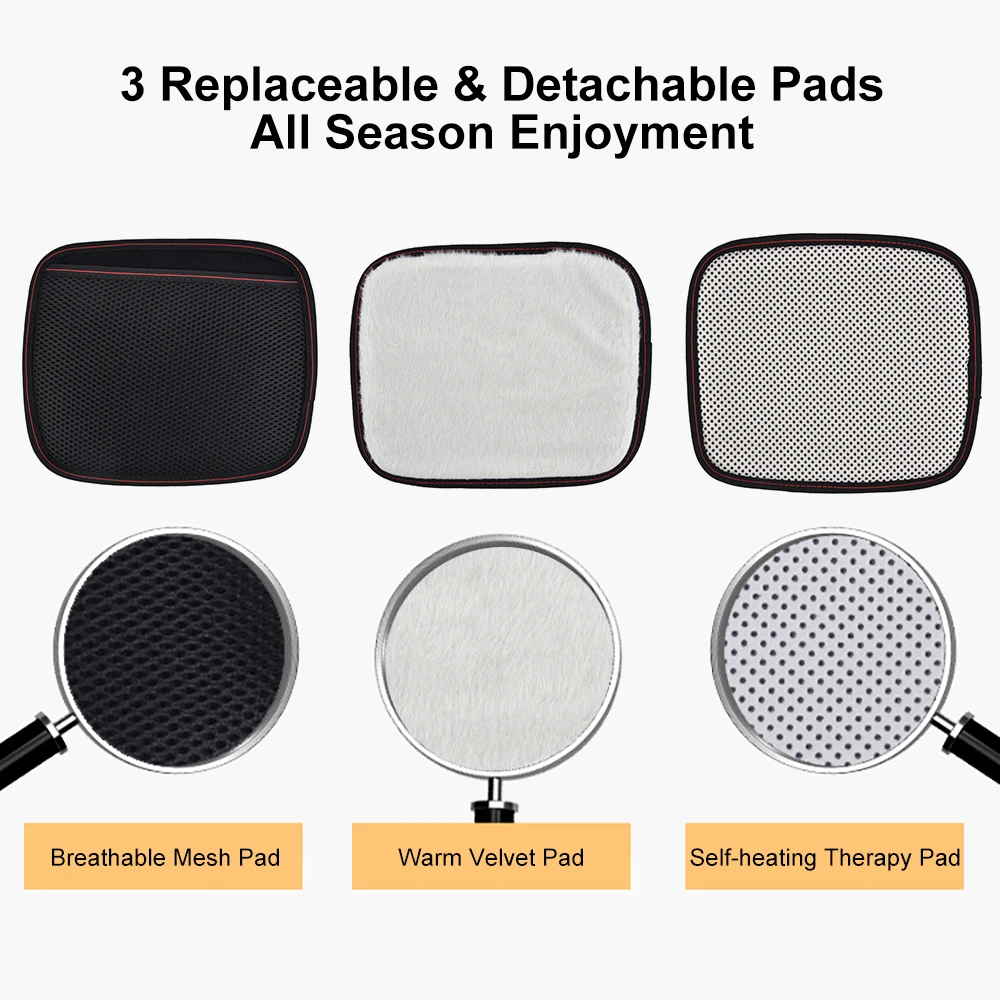 3. Оснащен 3 сменными и съемными подушечками для многоцелевого лечения и всесезонного удовольствия, встроенные 12 шт Самонагревающиеся магниты обеспечат горячую акупунктурную терапию, чтобы эффективно открыть поры и проникнуть в кожу, чтобы рассеять холодность и усилить рециркуляцию крови для усталости тела и облегчения боли в мышцах.