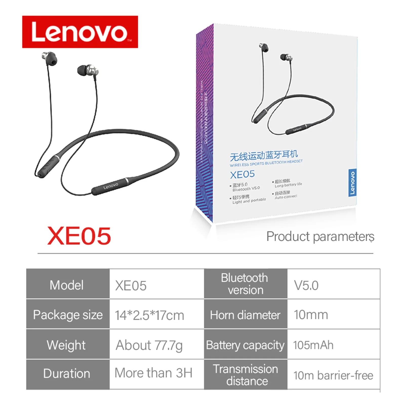 Беспроводные стереонаушники Lenovo XE05, Bluetooth 5,0, IPX5 водонепроницаемая Спортивная гарнитура с шумоподавлением и микрофоном