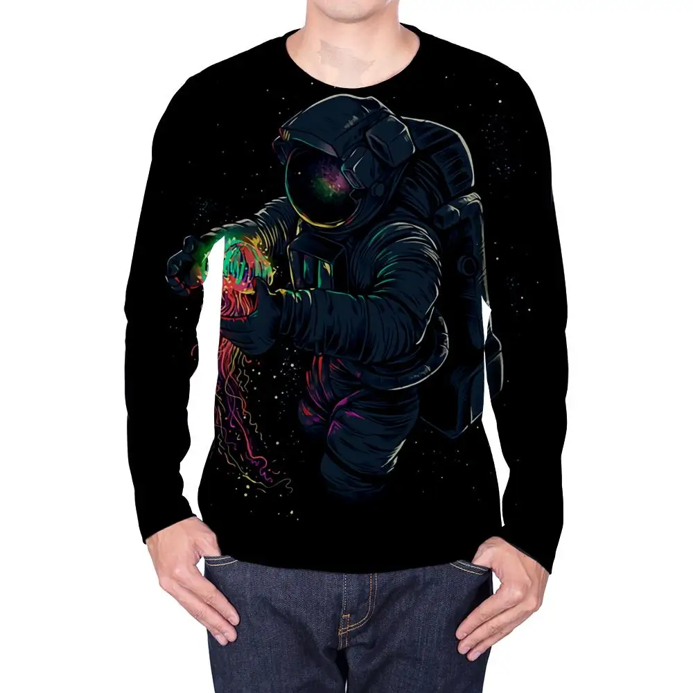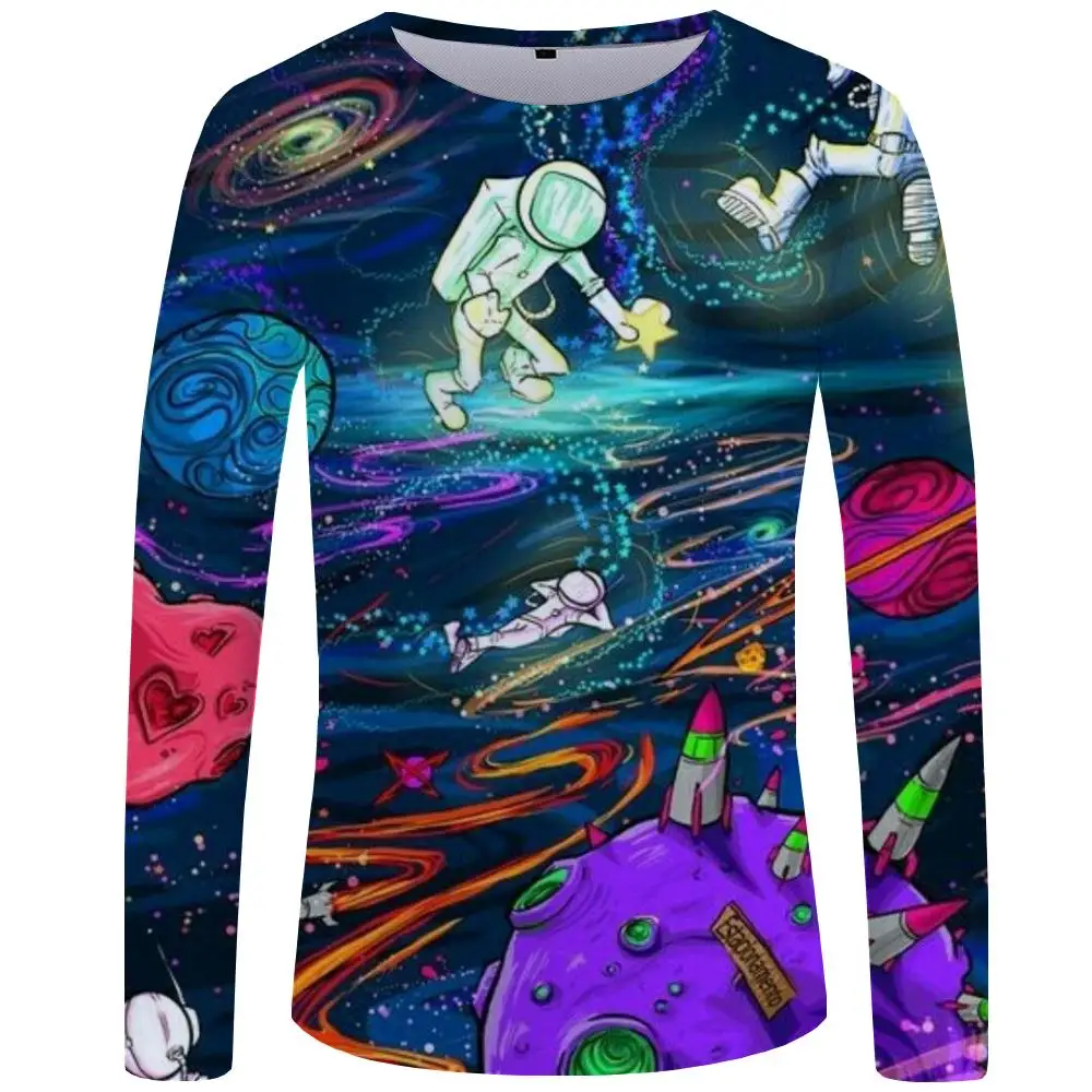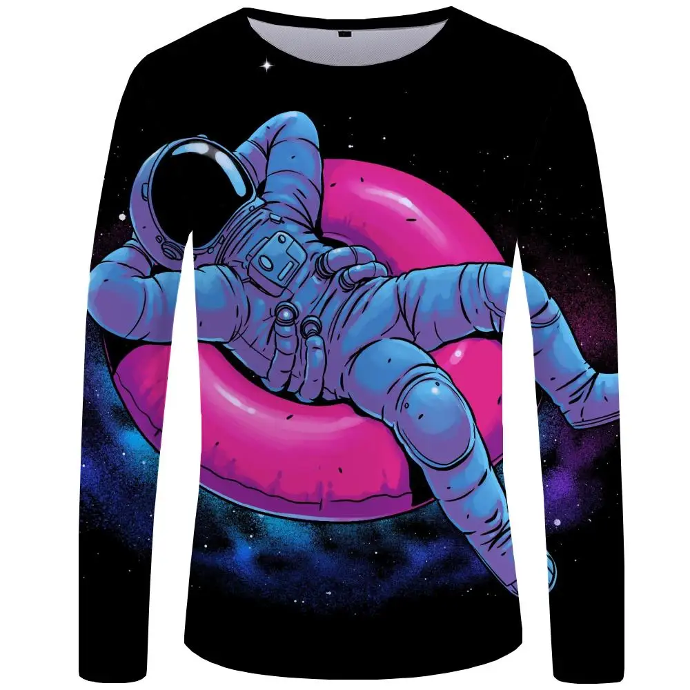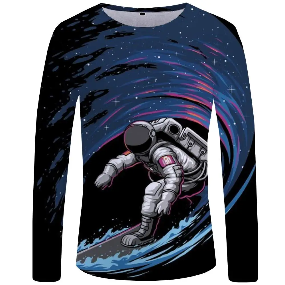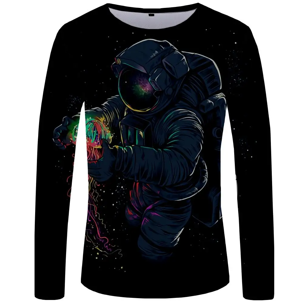 Мужская футболка с длинным рукавом KYKU, летняя футболка с длинным рукавом и принтом астронавтов, лето 2019