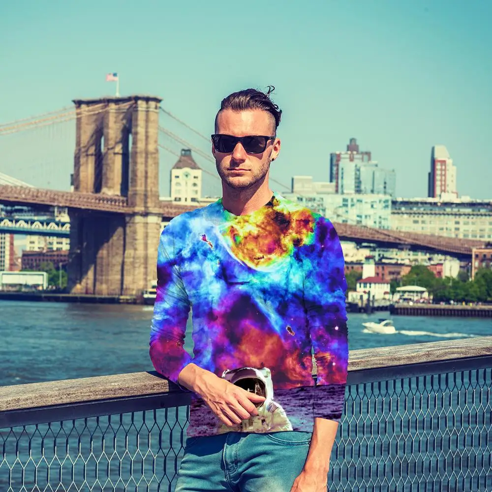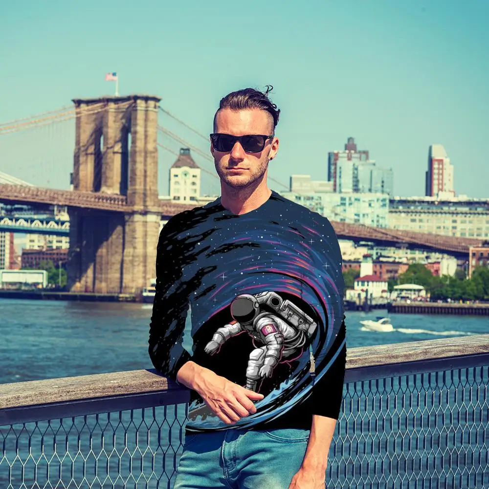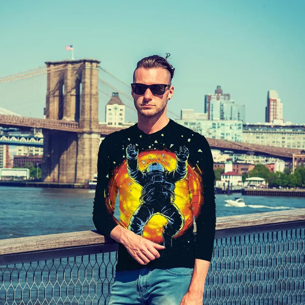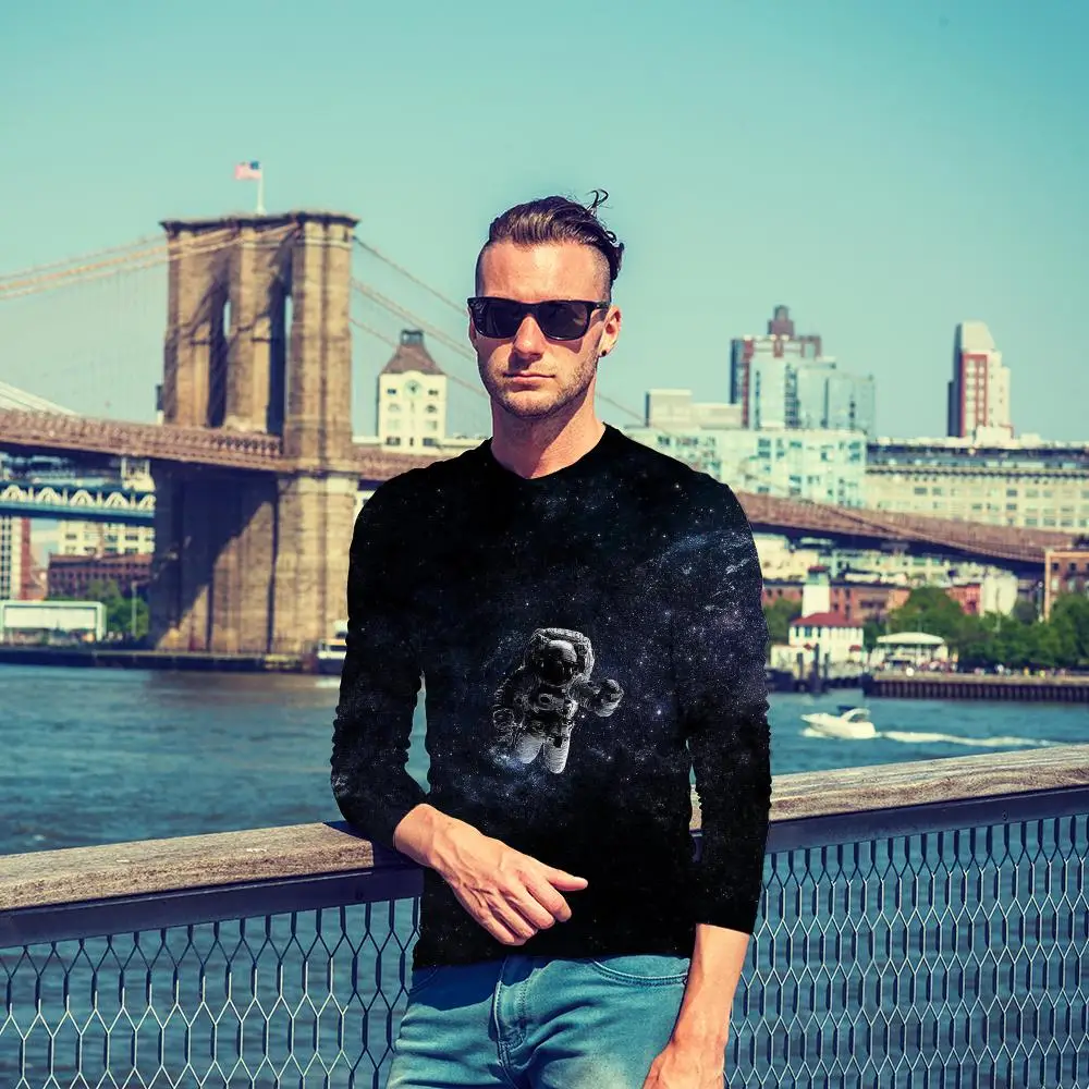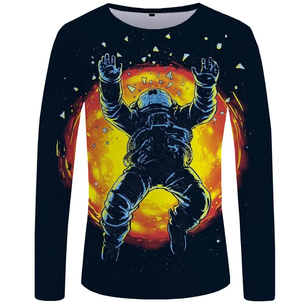 Мужская футболка с длинным рукавом KYKU, летняя футболка с длинным рукавом и принтом астронавтов, лето 2019