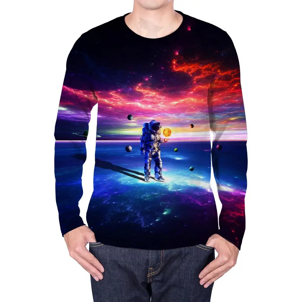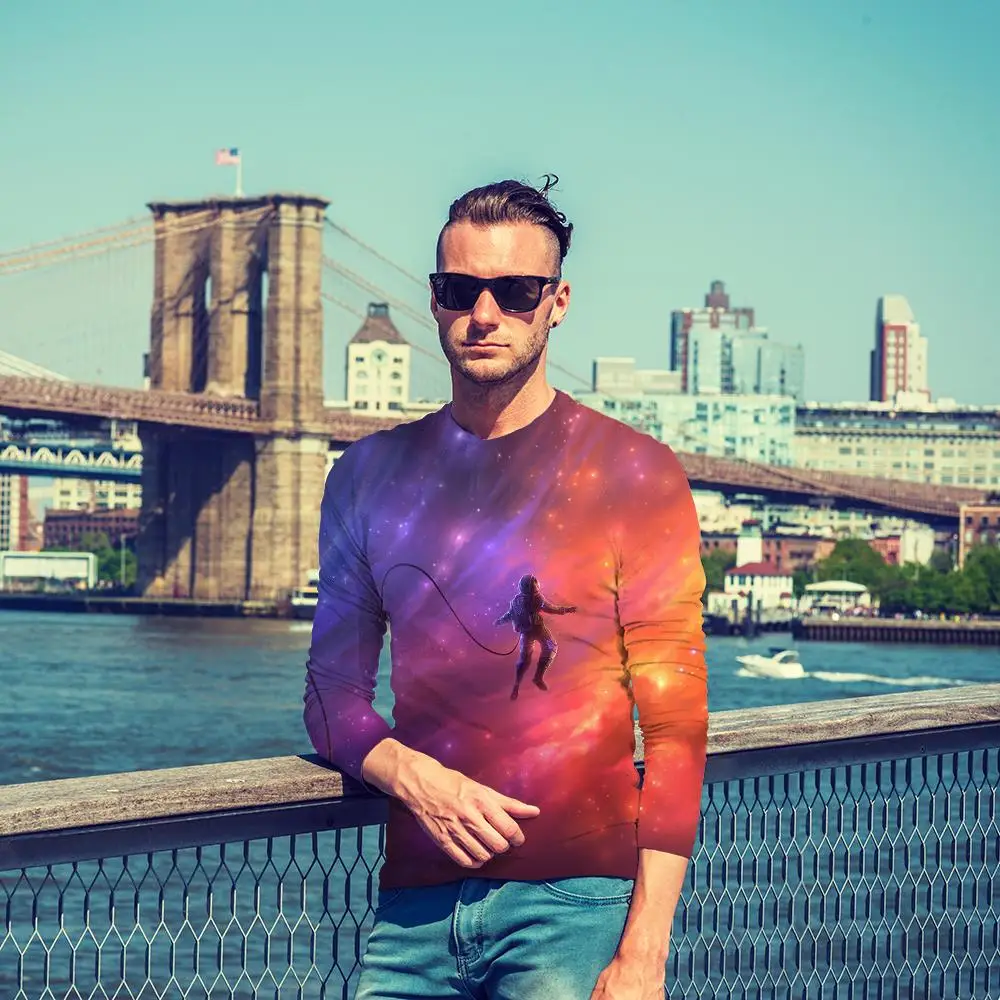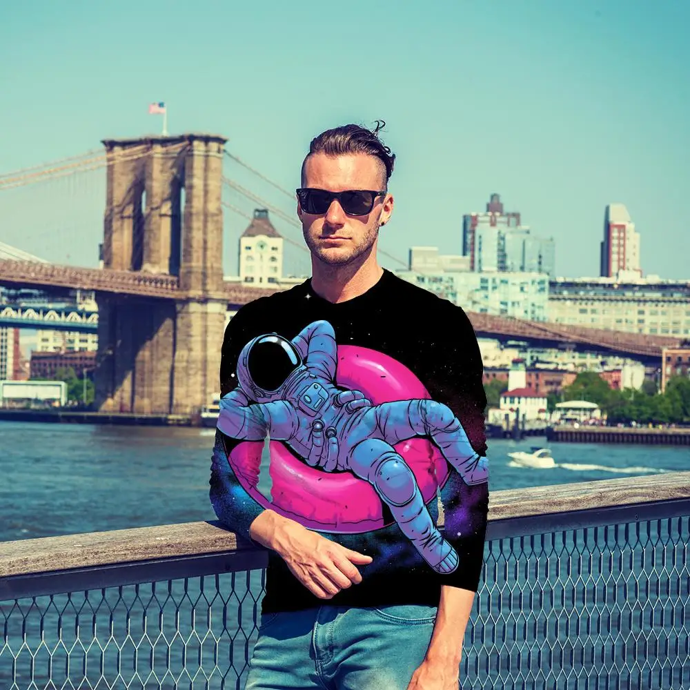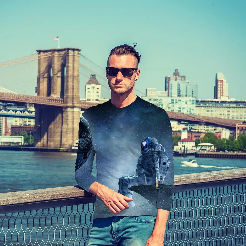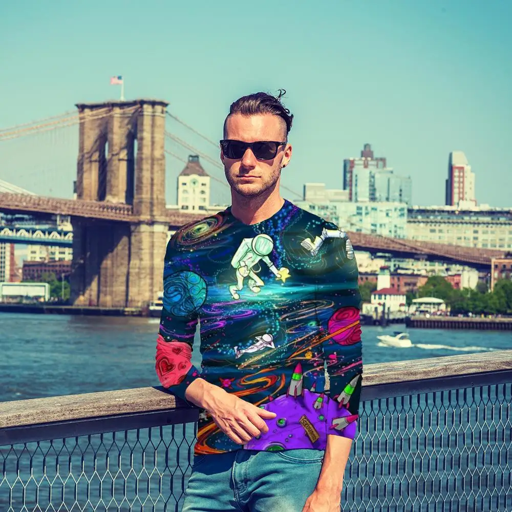Мужская футболка с длинным рукавом KYKU, летняя футболка с длинным рукавом и принтом астронавтов, лето 2019