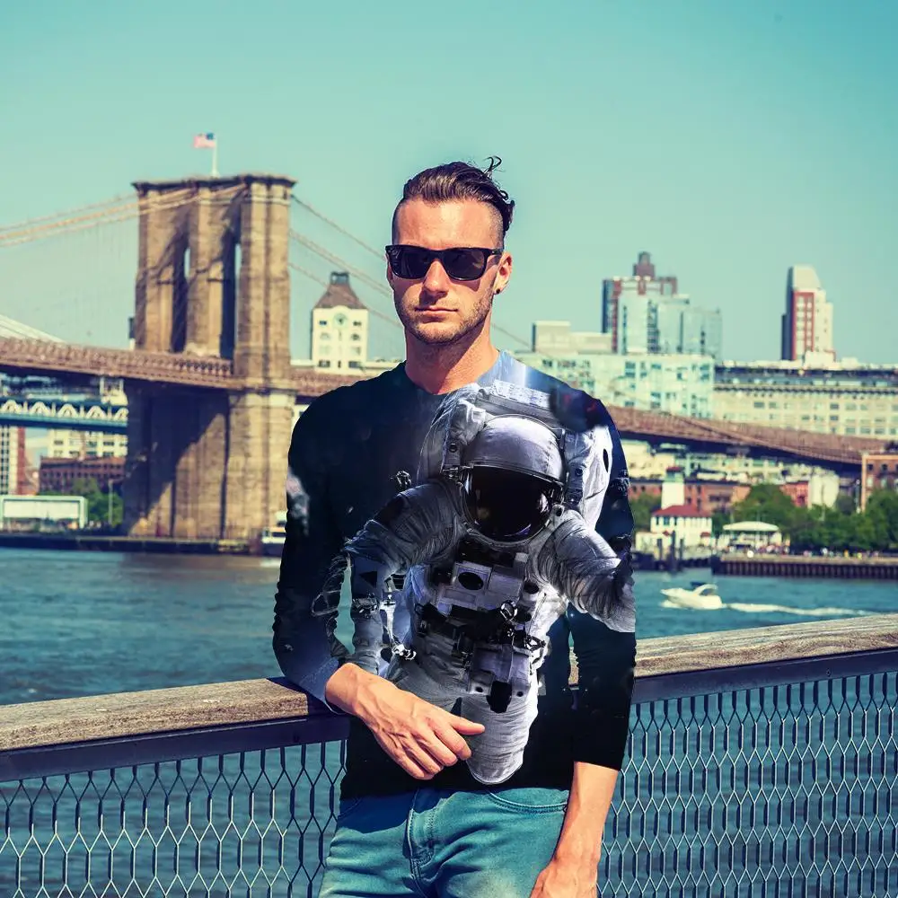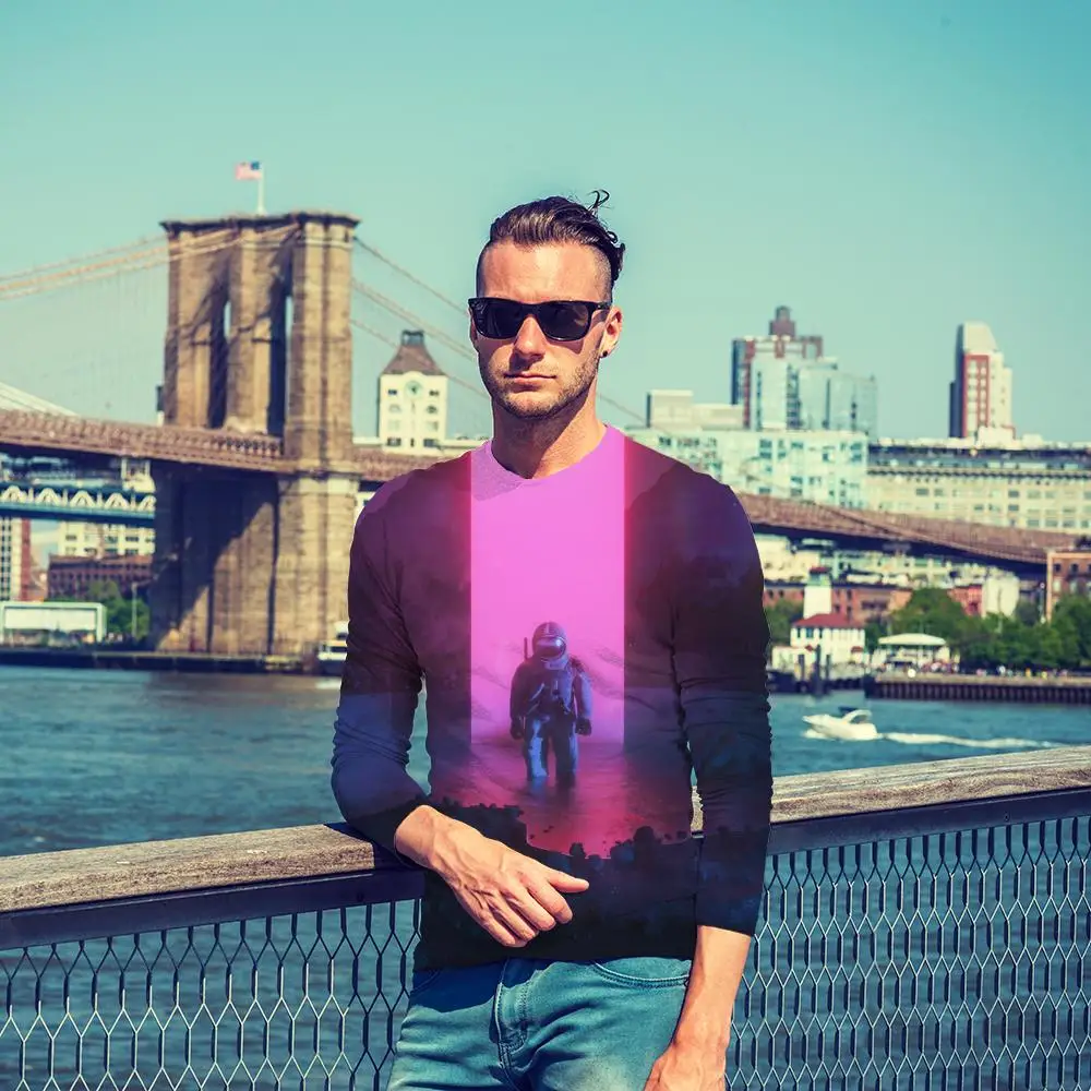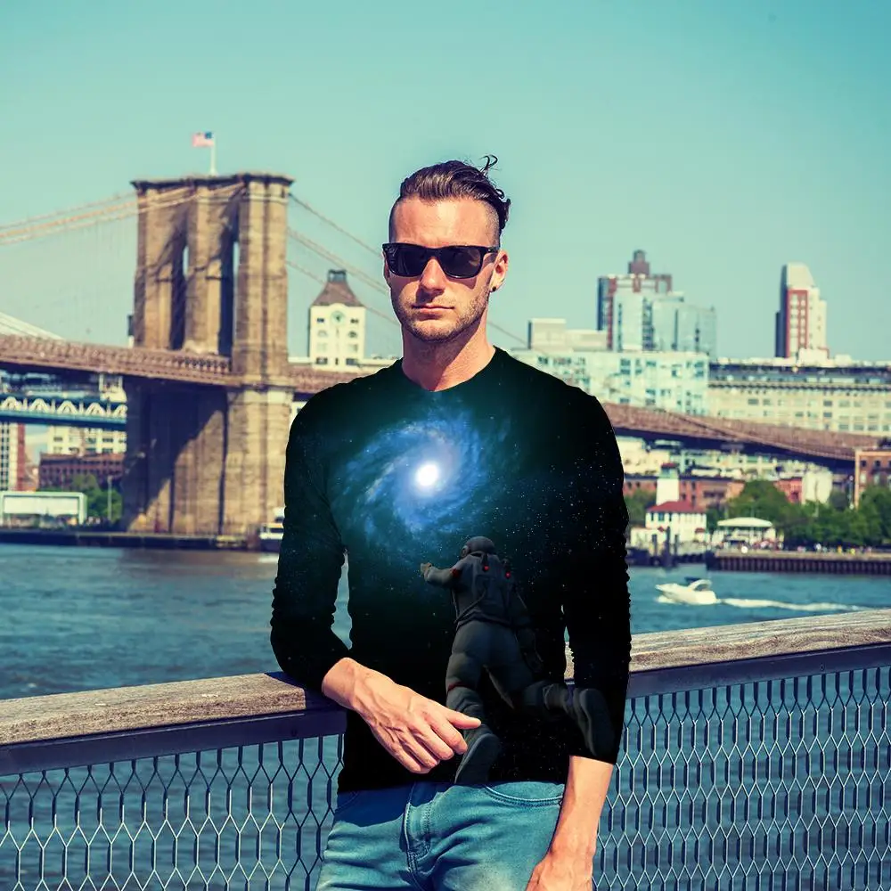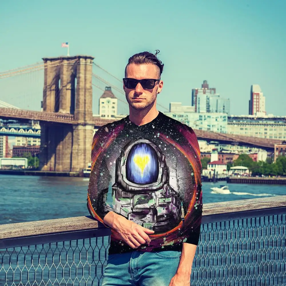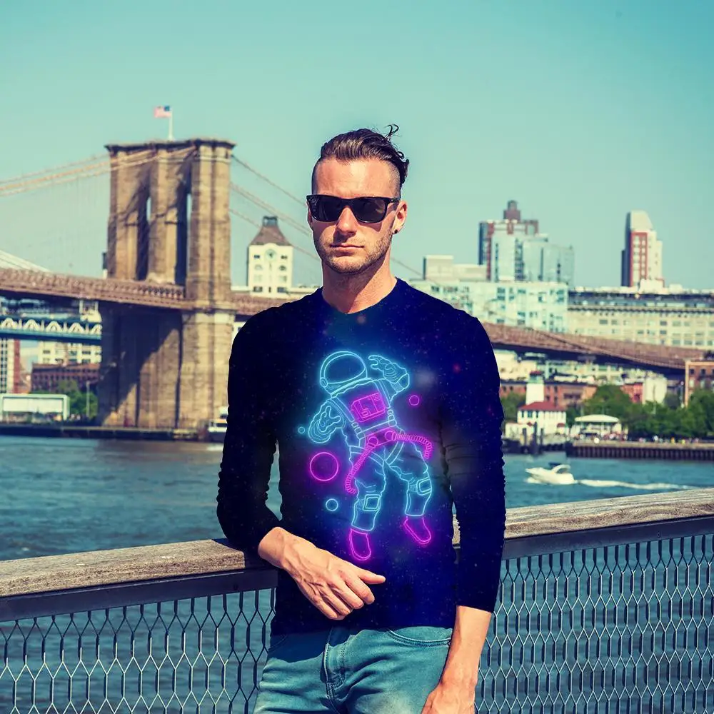 Мужская футболка с длинным рукавом KYKU, летняя футболка с длинным рукавом и принтом астронавтов, лето 2019