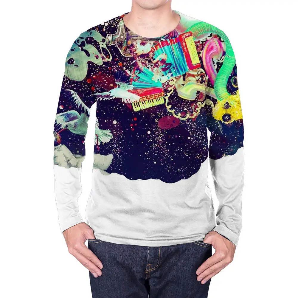Мужская футболка KYKU, белая футболка с длинным рукавом и 3D-принто...