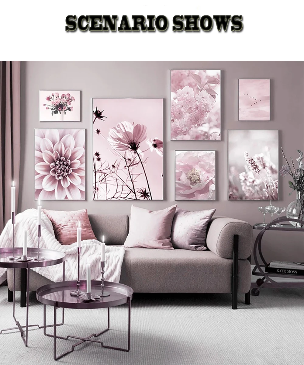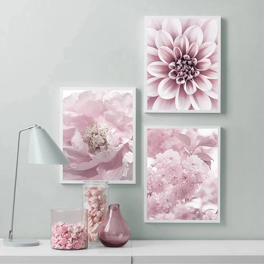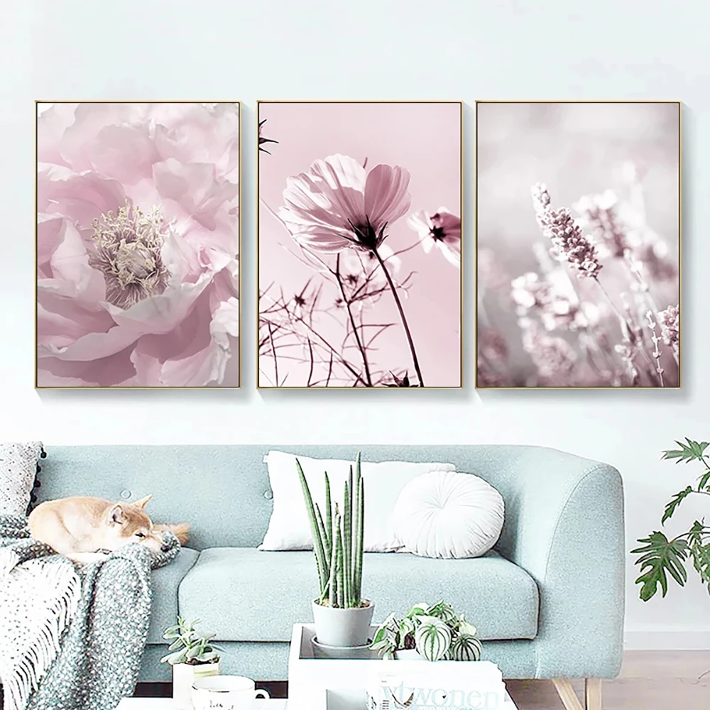 Современный скандинавский постер на холсте с розовыми цветами вишни, розой, пионами, небом, птицей, Настенная роспись для домашнего декора комнаты
