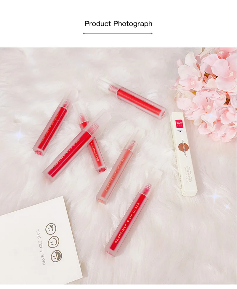 Характеристики продукта: текстура крема-это светильник, туманный и мягкий, а цвет-яркий и яркий. Он мягко скользит по губам, чтобы придать губам туманный Макияж лица. Увлажняет и увлажняет. Матовый эффект макияжа