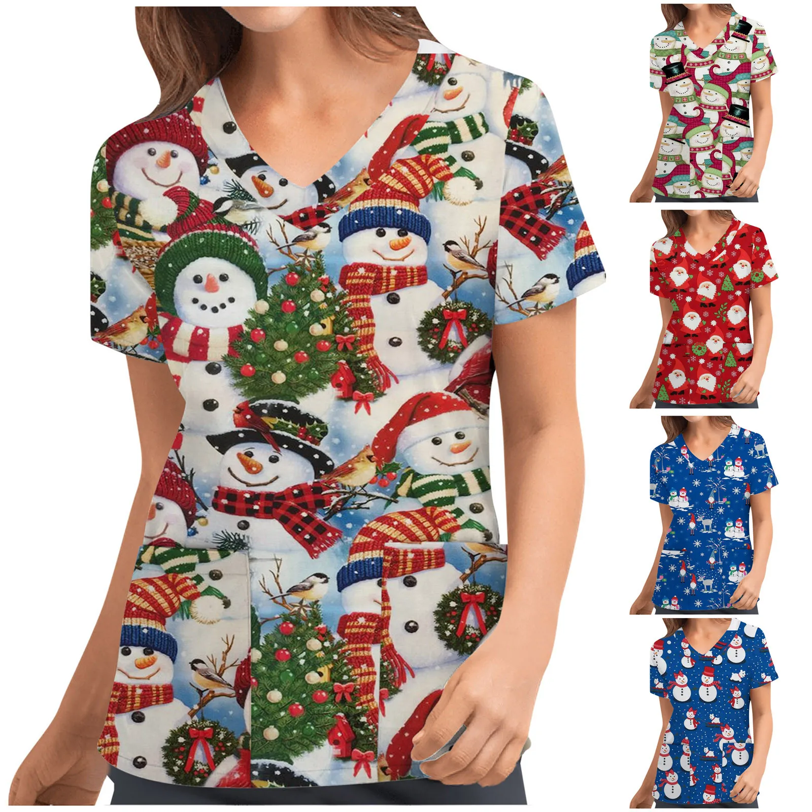 Рождественская униформа медсестры, женские топы с принтом снеговика, топы с коротким рукавом для медсестры на День Благодарения, Рабочая Униформа для кормления, блузка, рубашка
