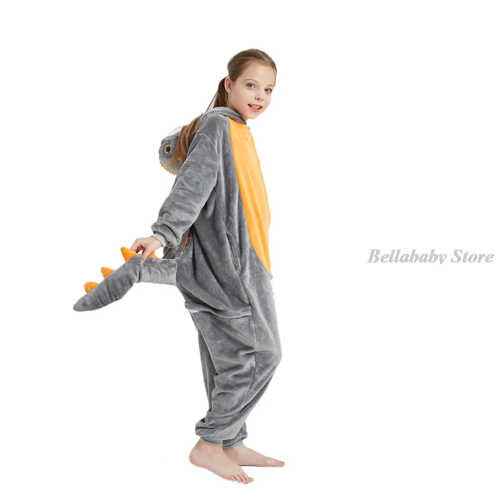 Пижама-кигуруми в виде динозавра для мальчиков, зеленая пижама-комбинезон с капюшоном в виде животных, костюм на день рождения, Рождество, Хэллоуин