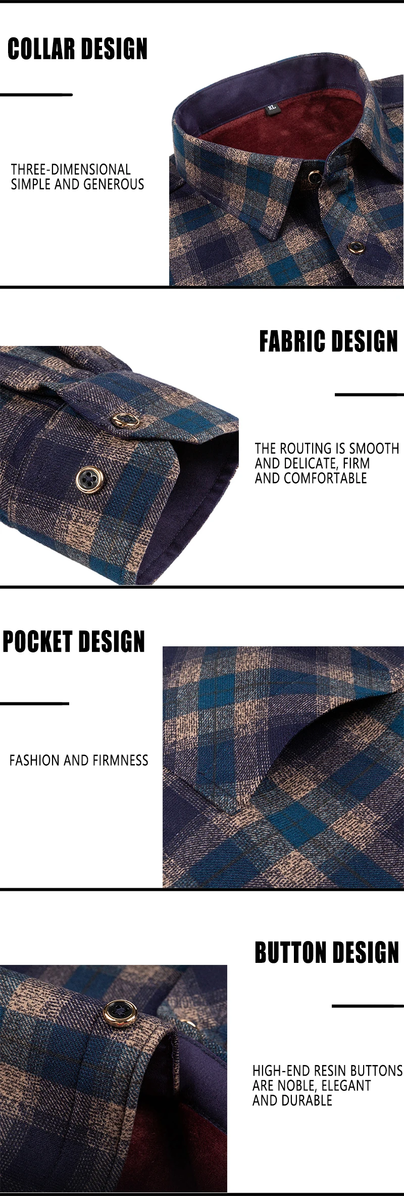 Мужская Фланелевая рубашка в клетку, с бархатной подкладкой