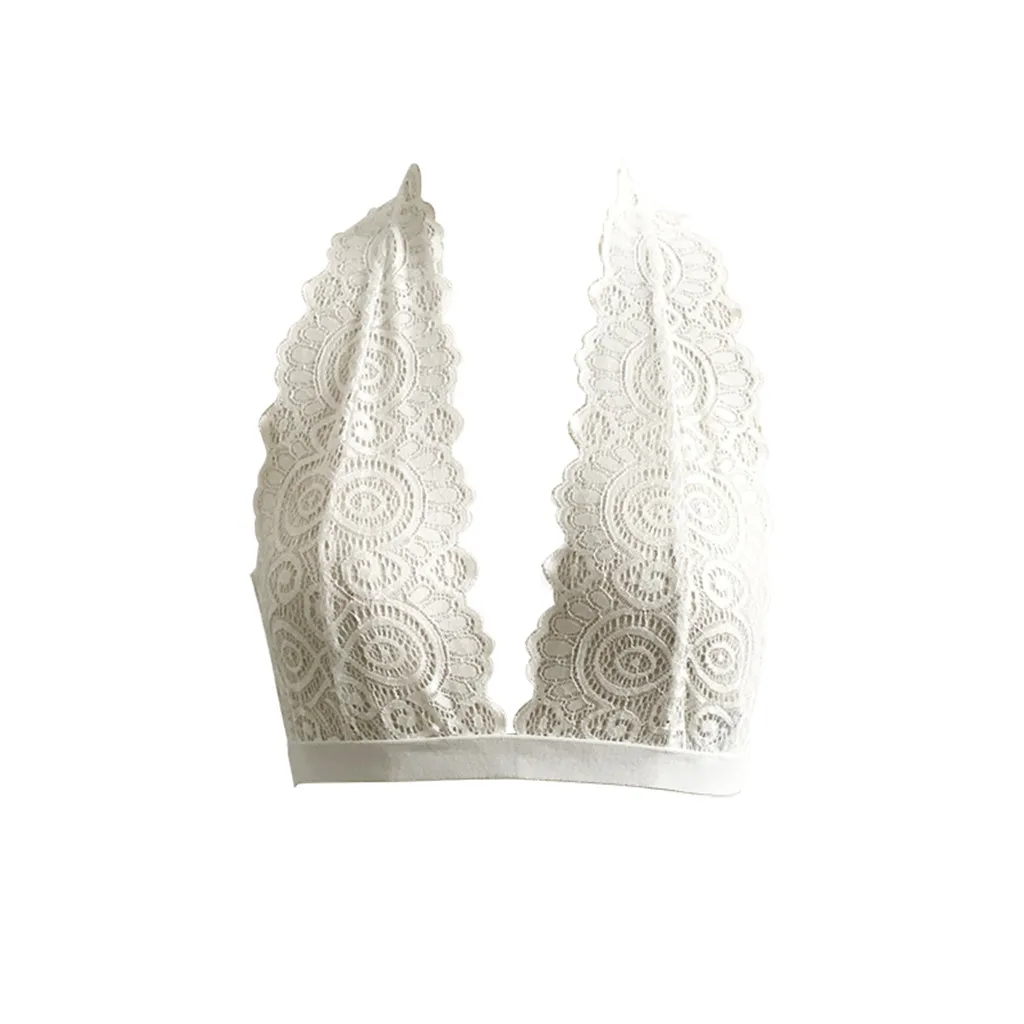 Черный, белый кружевной бюстгальтер с цветочным рисунком, женское сексуальное нижнее белье, прозрачный бюстгальтер с лямкой на шее, бюстгальтер без косточек, экзотическое нижнее белье, Lenceria sentive Mujer