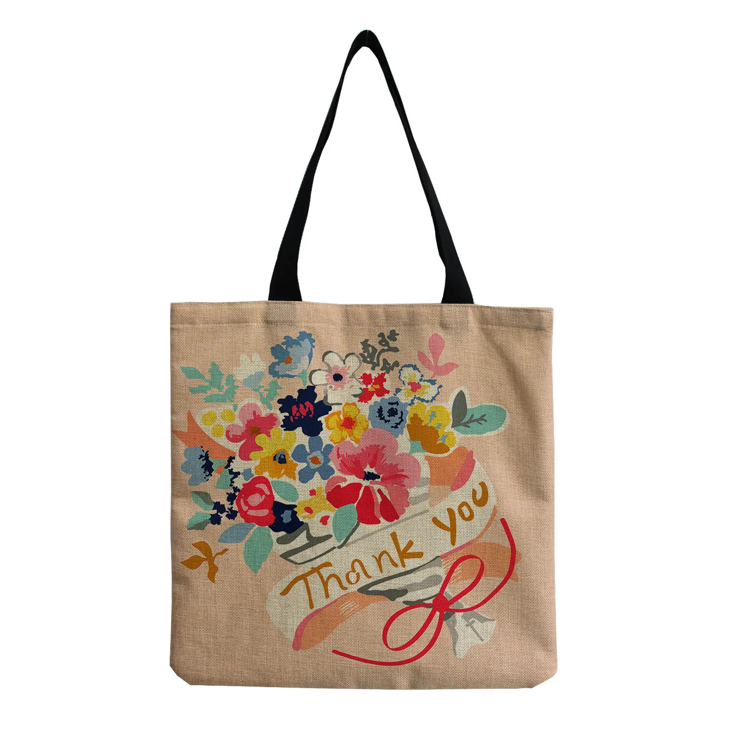 YUECIMIE пляжная сумка на плечо с цветочным принтом, сумка из льняной ткани, Повседневная Складная Сумка-тоут для покупок для женщин, женская сумка